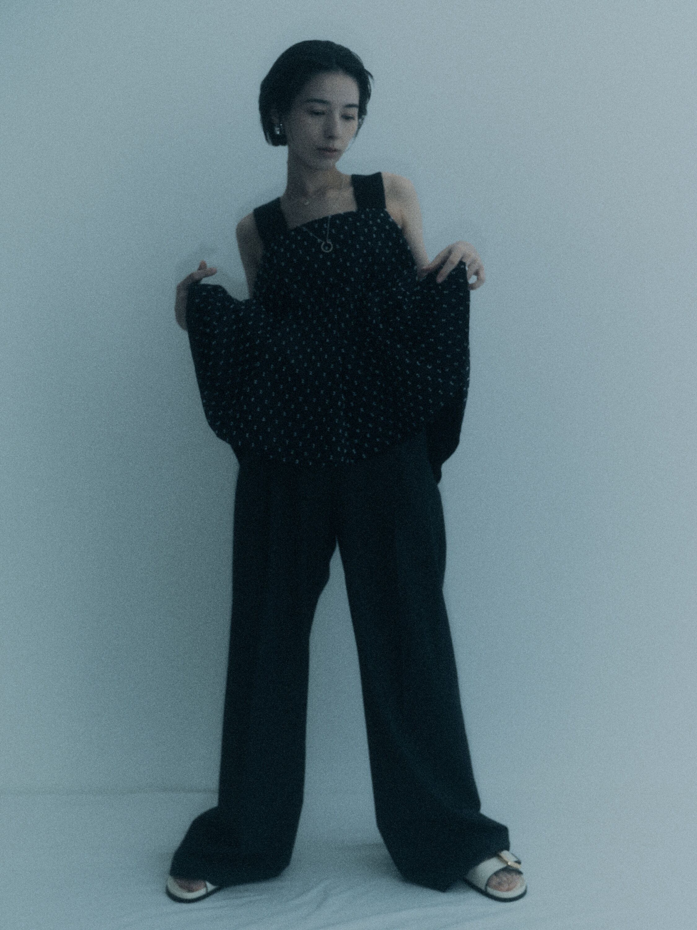 動くたびに揺れる立体的なドレープが、さり気ない華やかさと落ち感を演出します。
