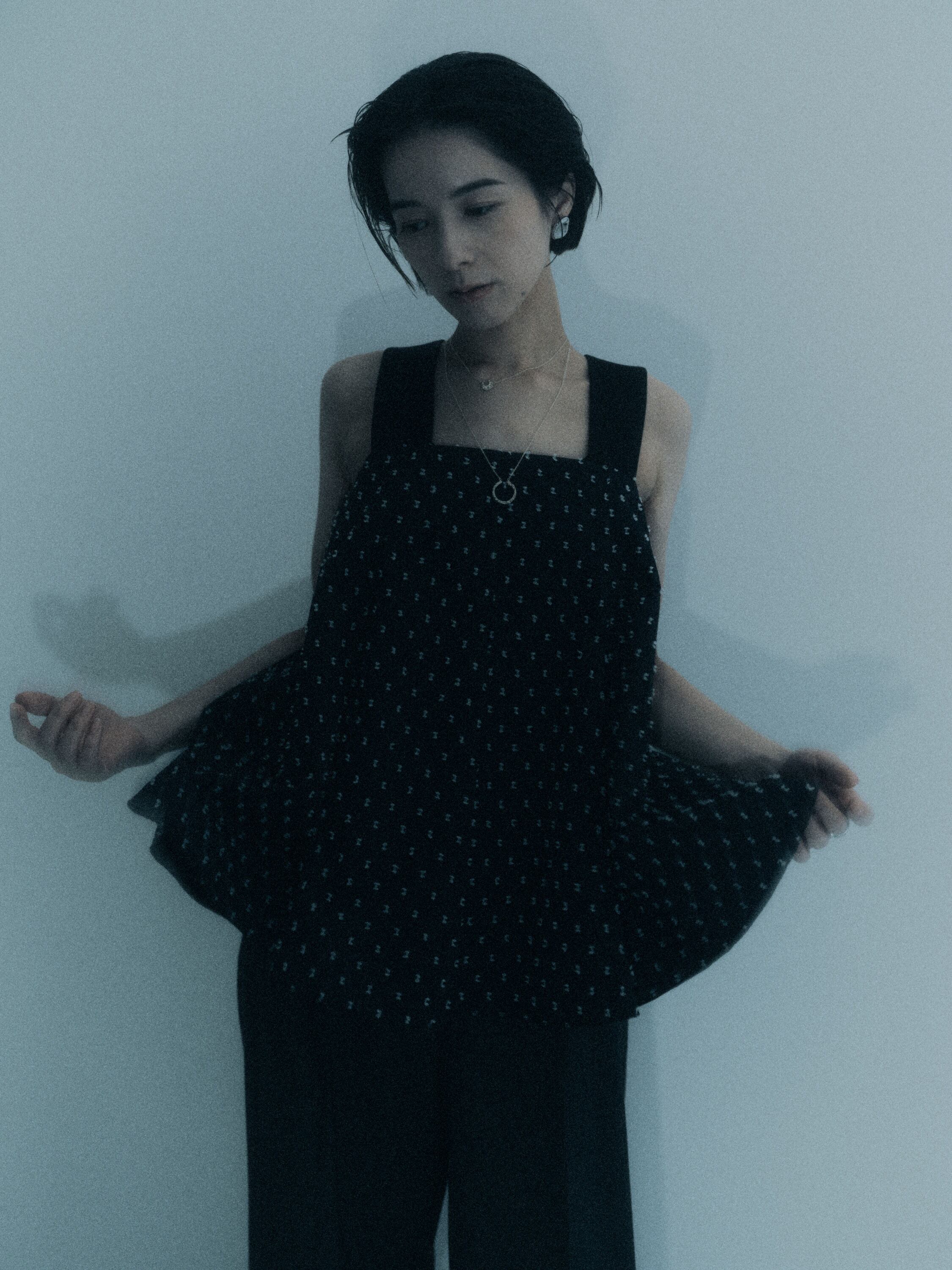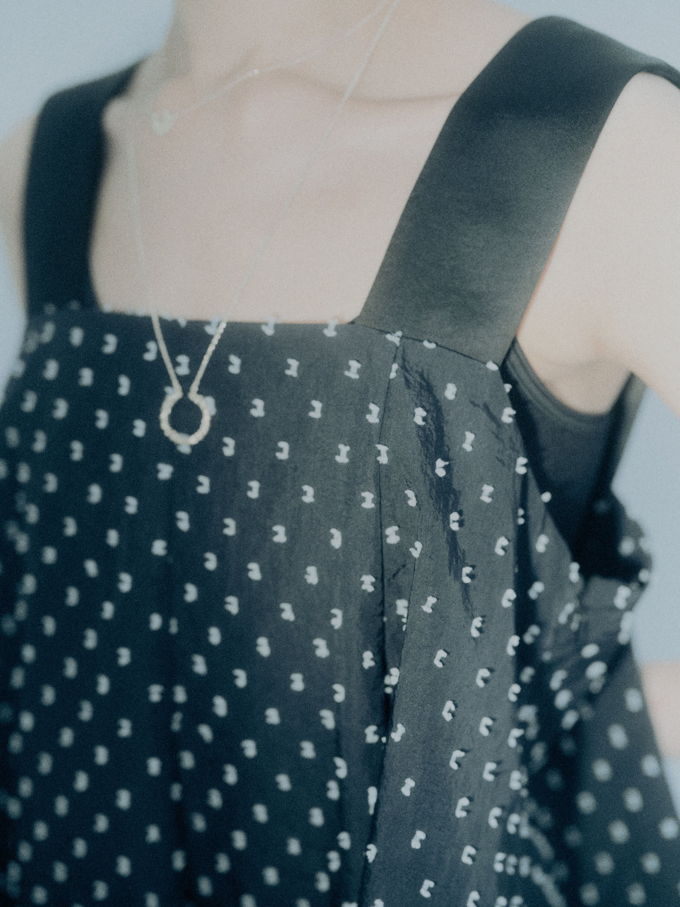 肩紐部分にはほんのり光沢のあるサテン素材を使用し、モードなエッセンスをプラスしました。