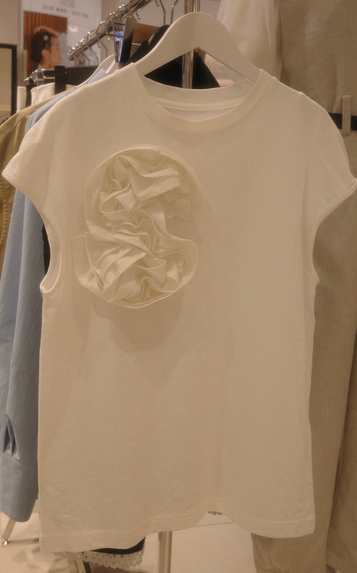 ■サテンディテールカットソー WHITE S フラワー■