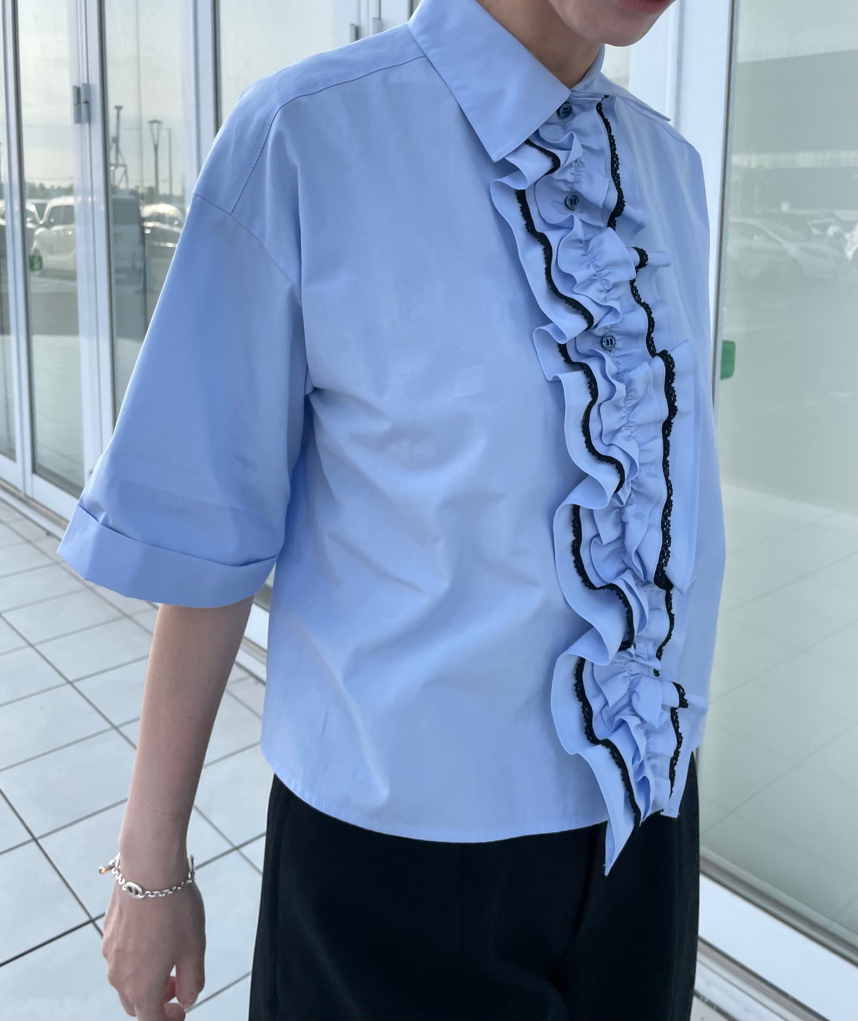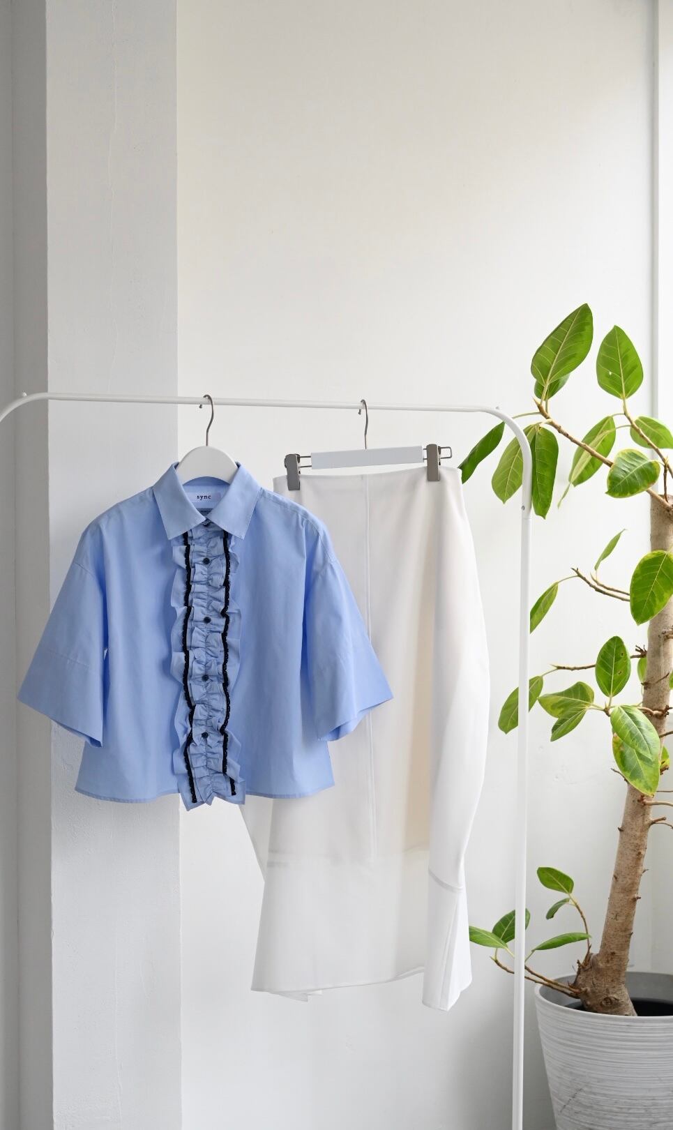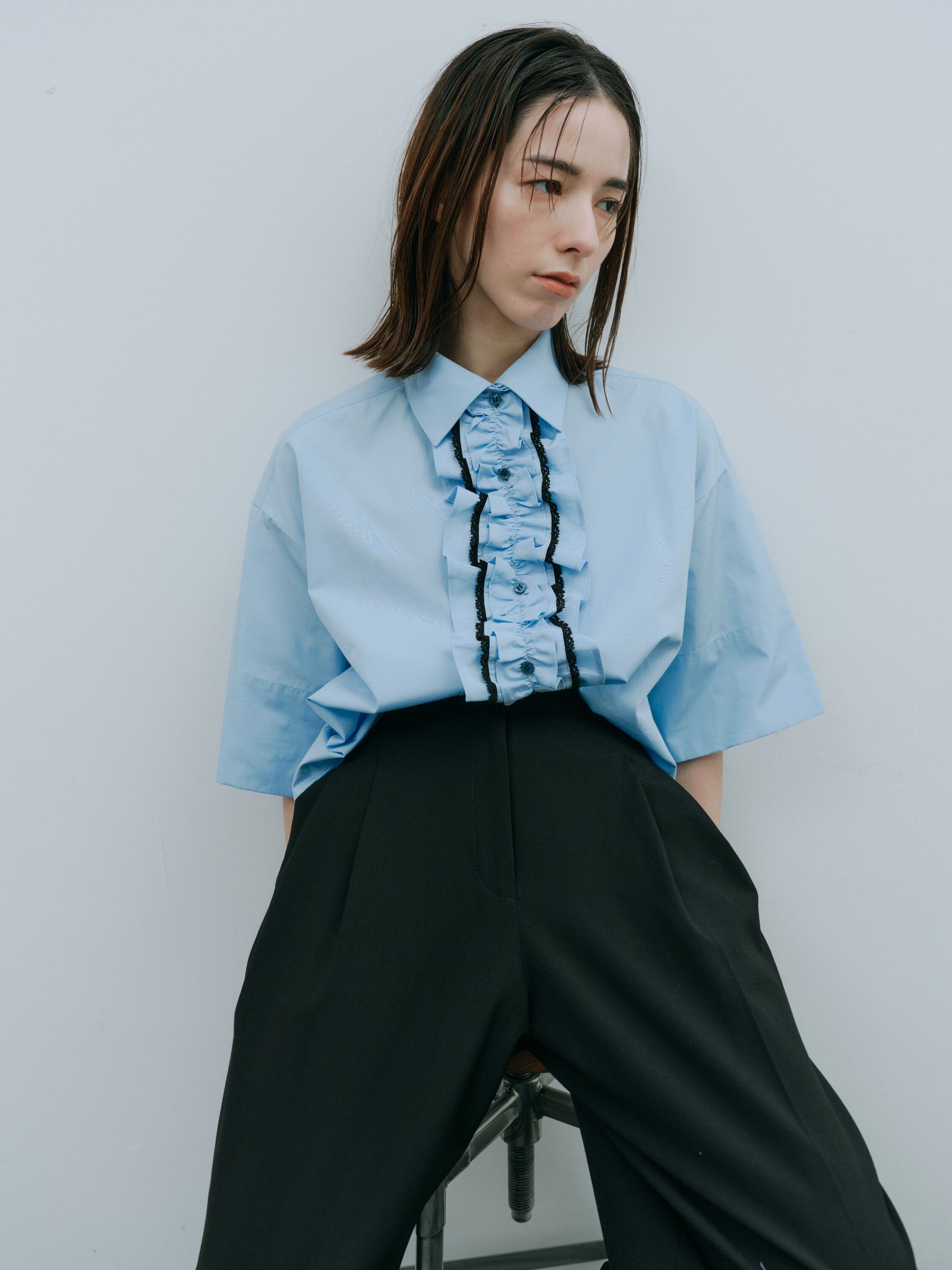 2wayでフリル部分が取り外しできるので、シンプルなブラウスとしても着用頂けます。