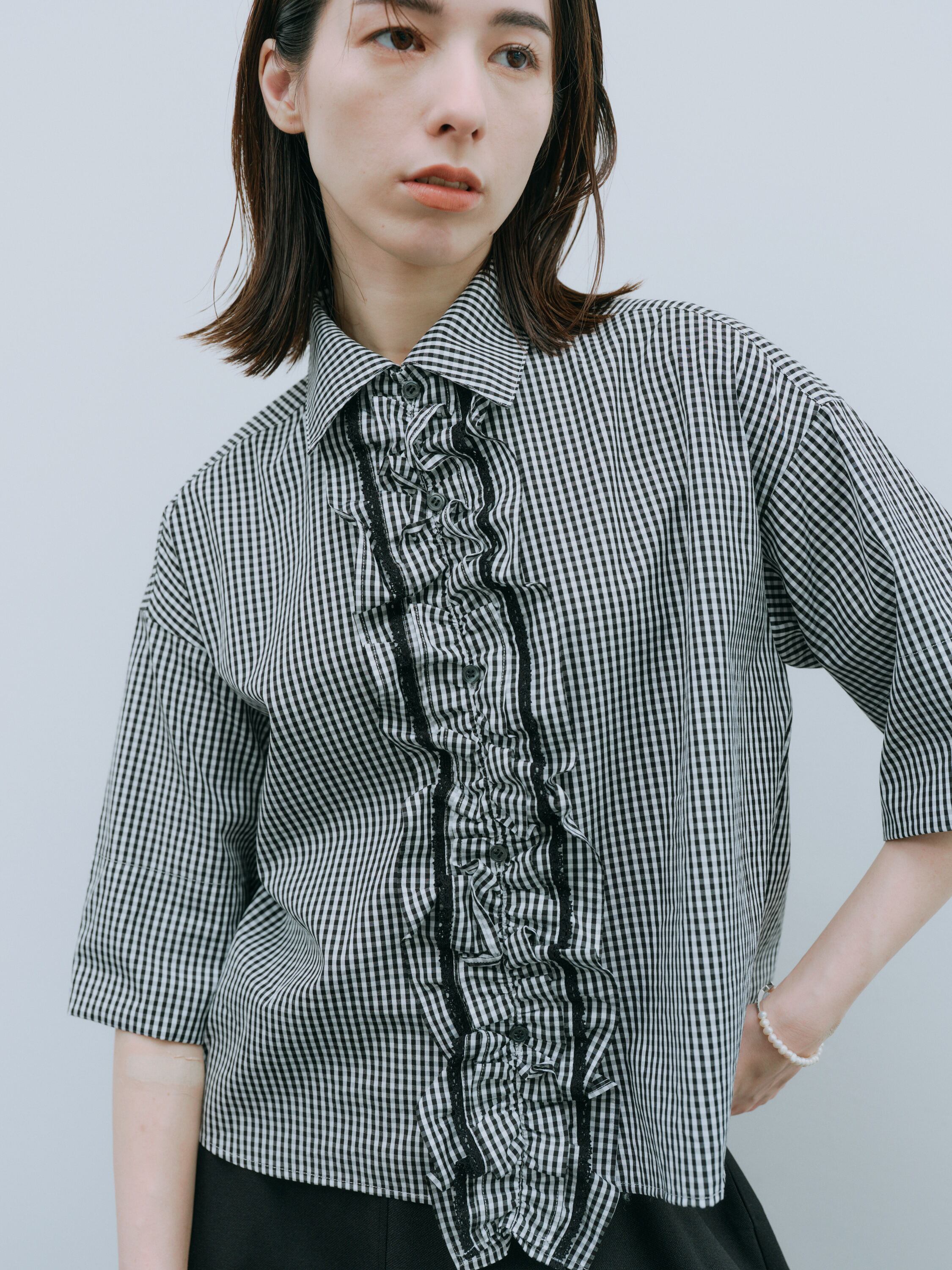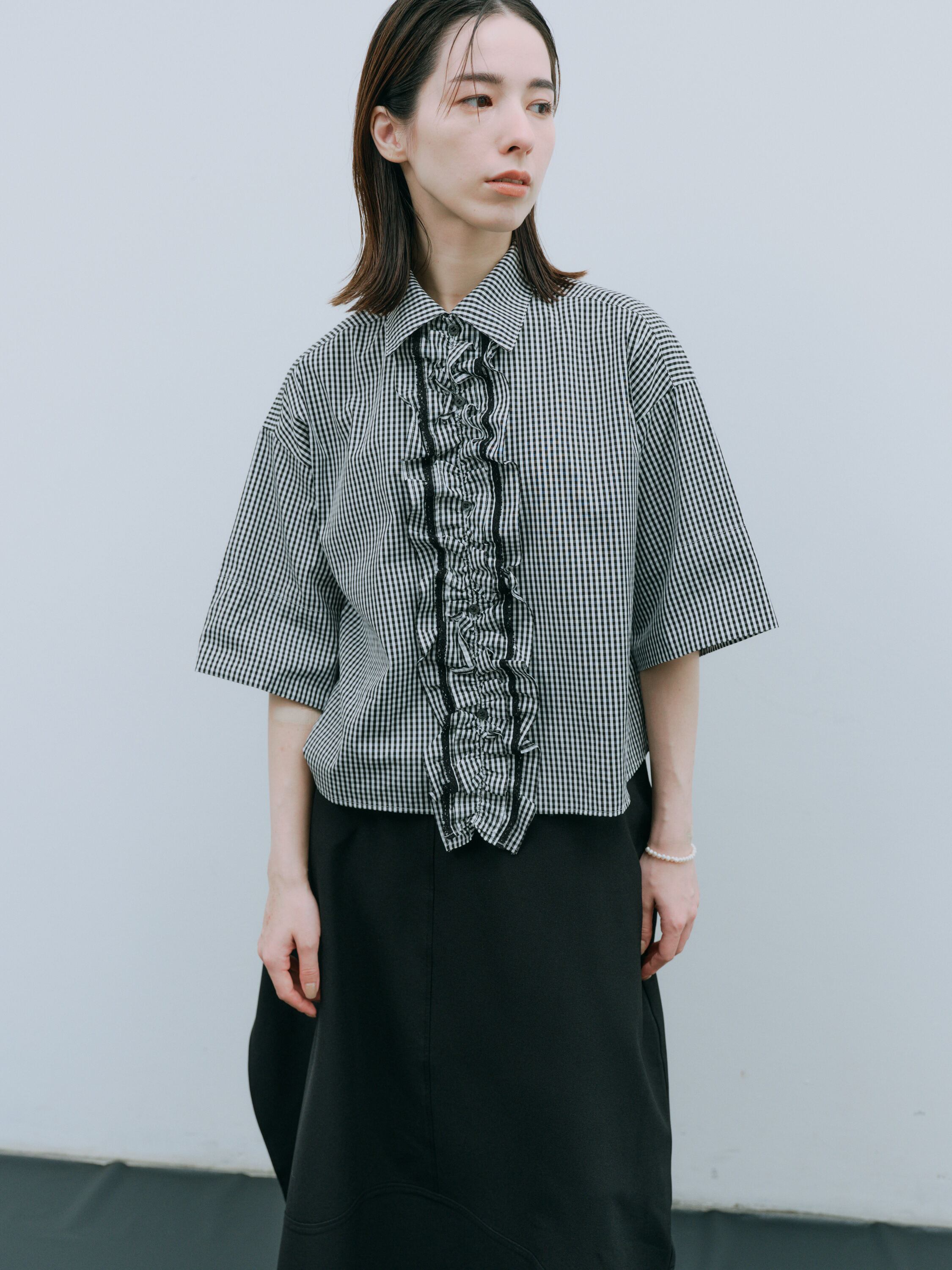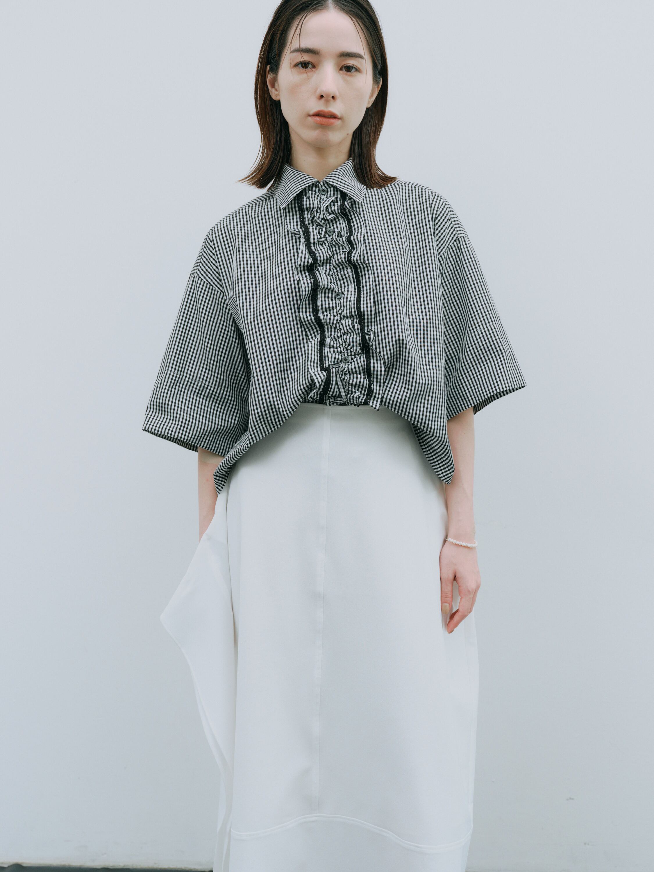 2wayでフリル部分が取り外しできるので、シンプルなブラウスとしても着用頂けます。