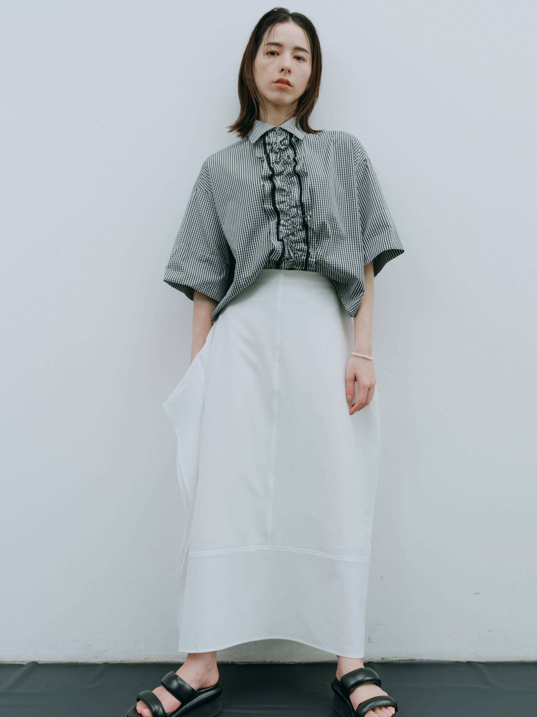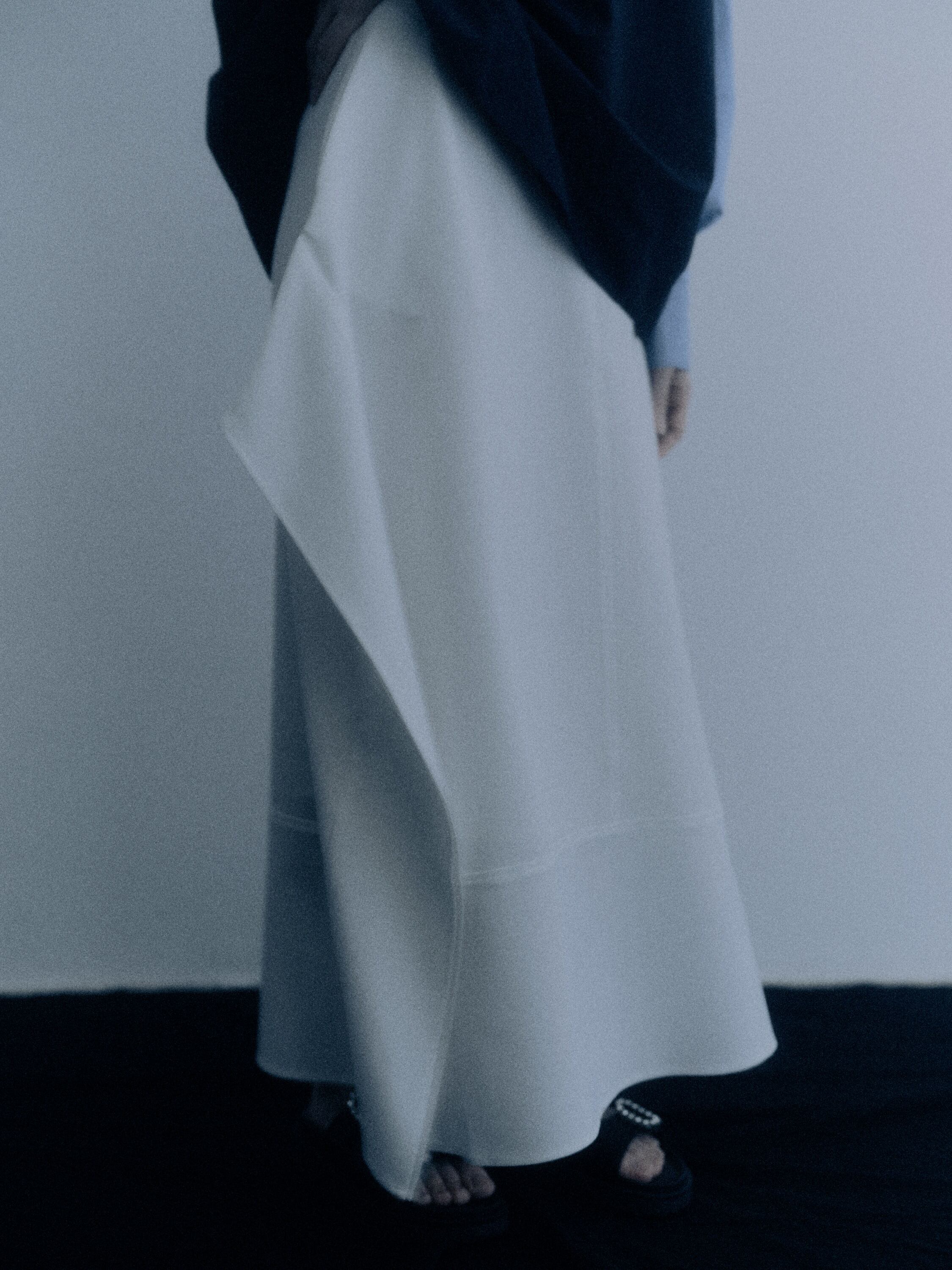 モダンでスタイリッシュなデザインが特徴のスカートです。