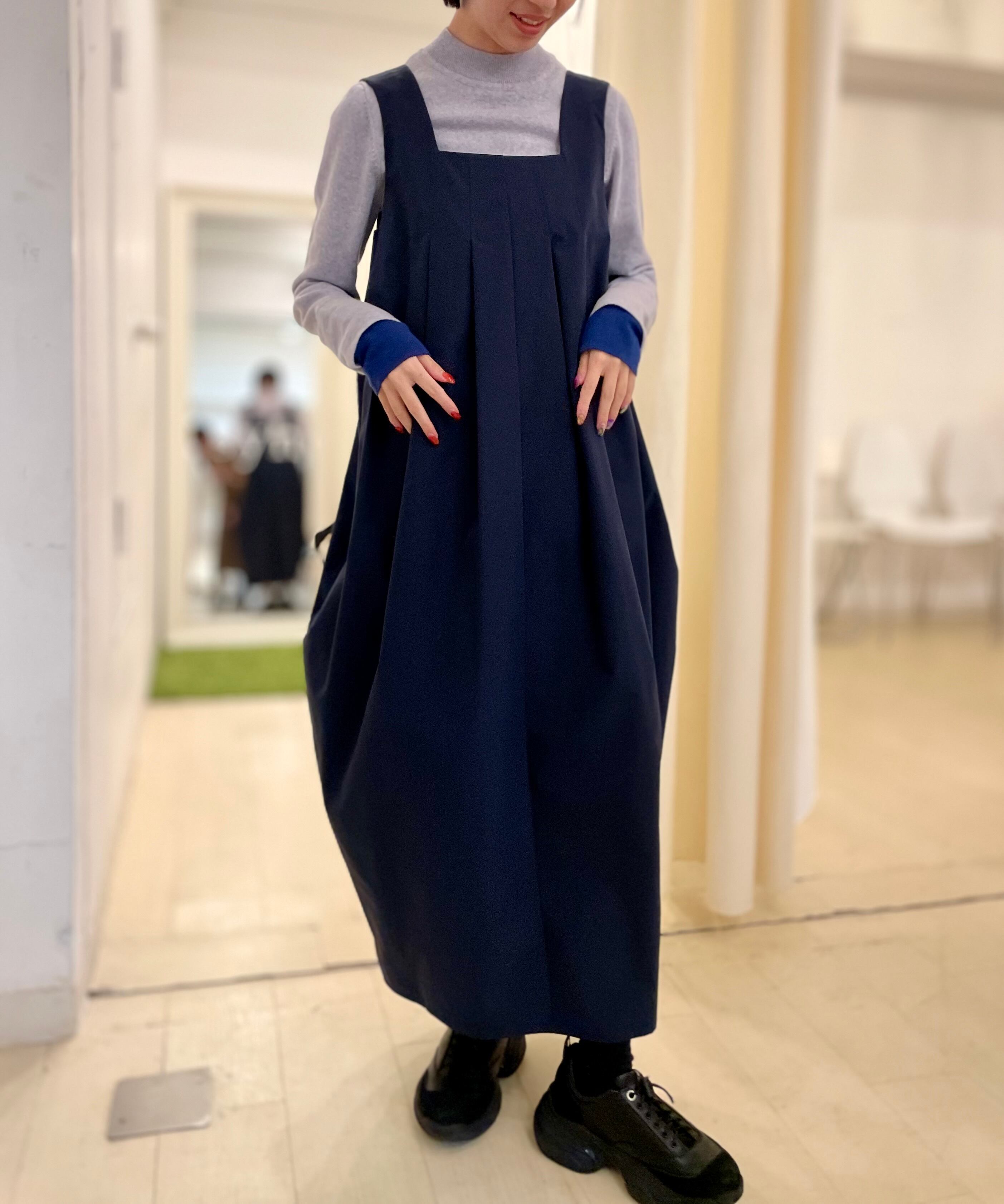 合わせるアイテムにより、カジュアルにもモードにもエレガンスにも適応できるワンピース。