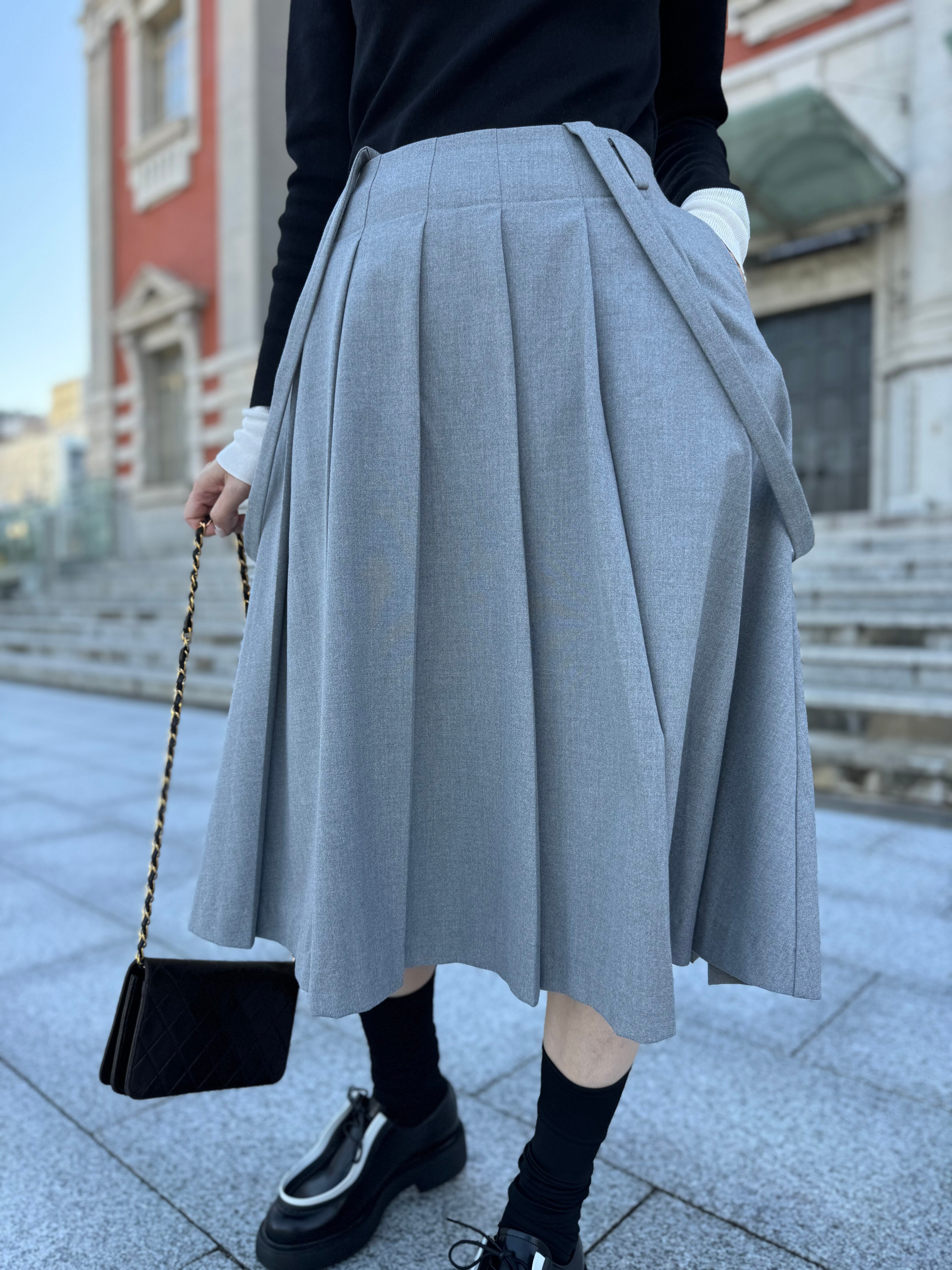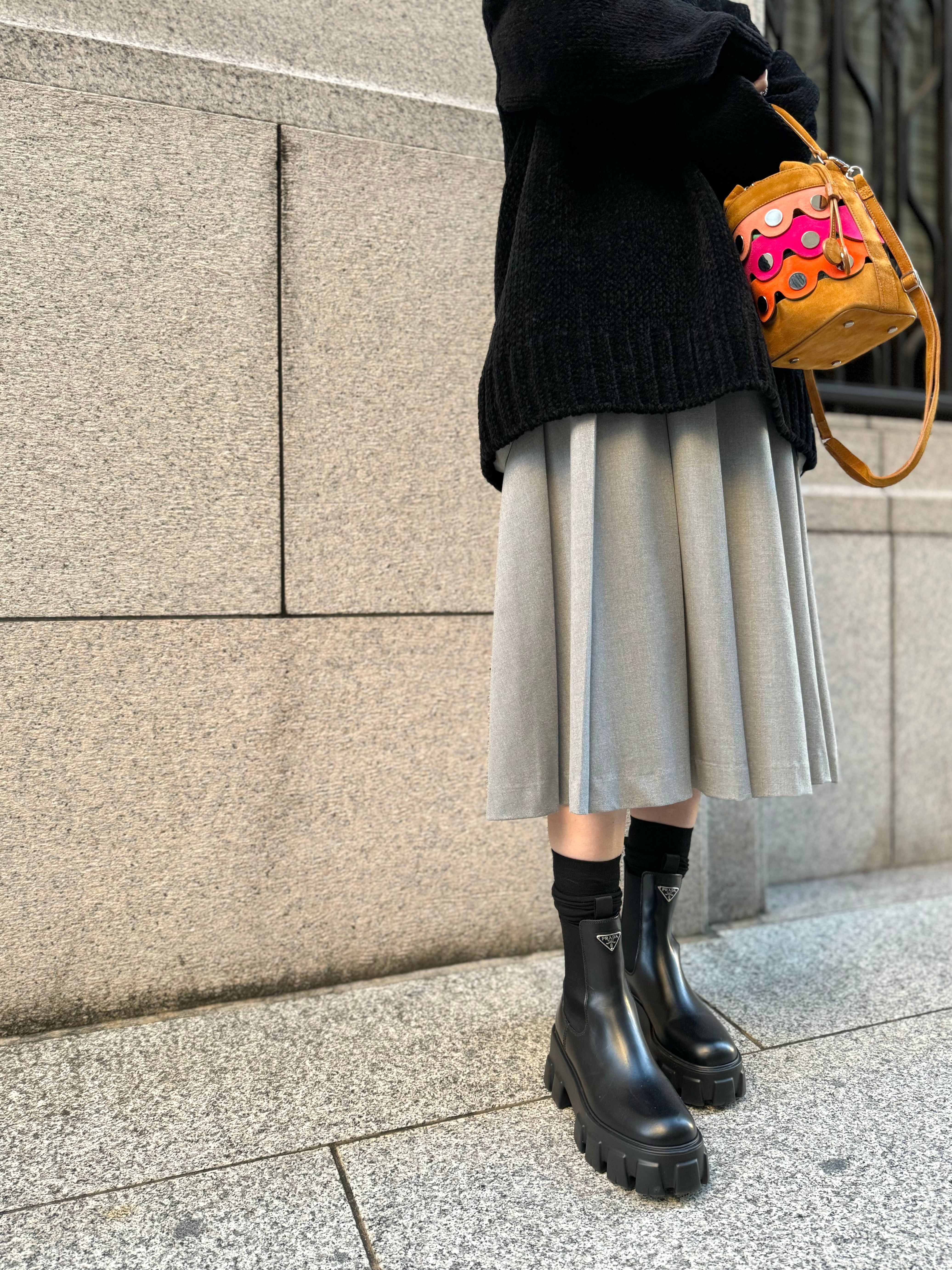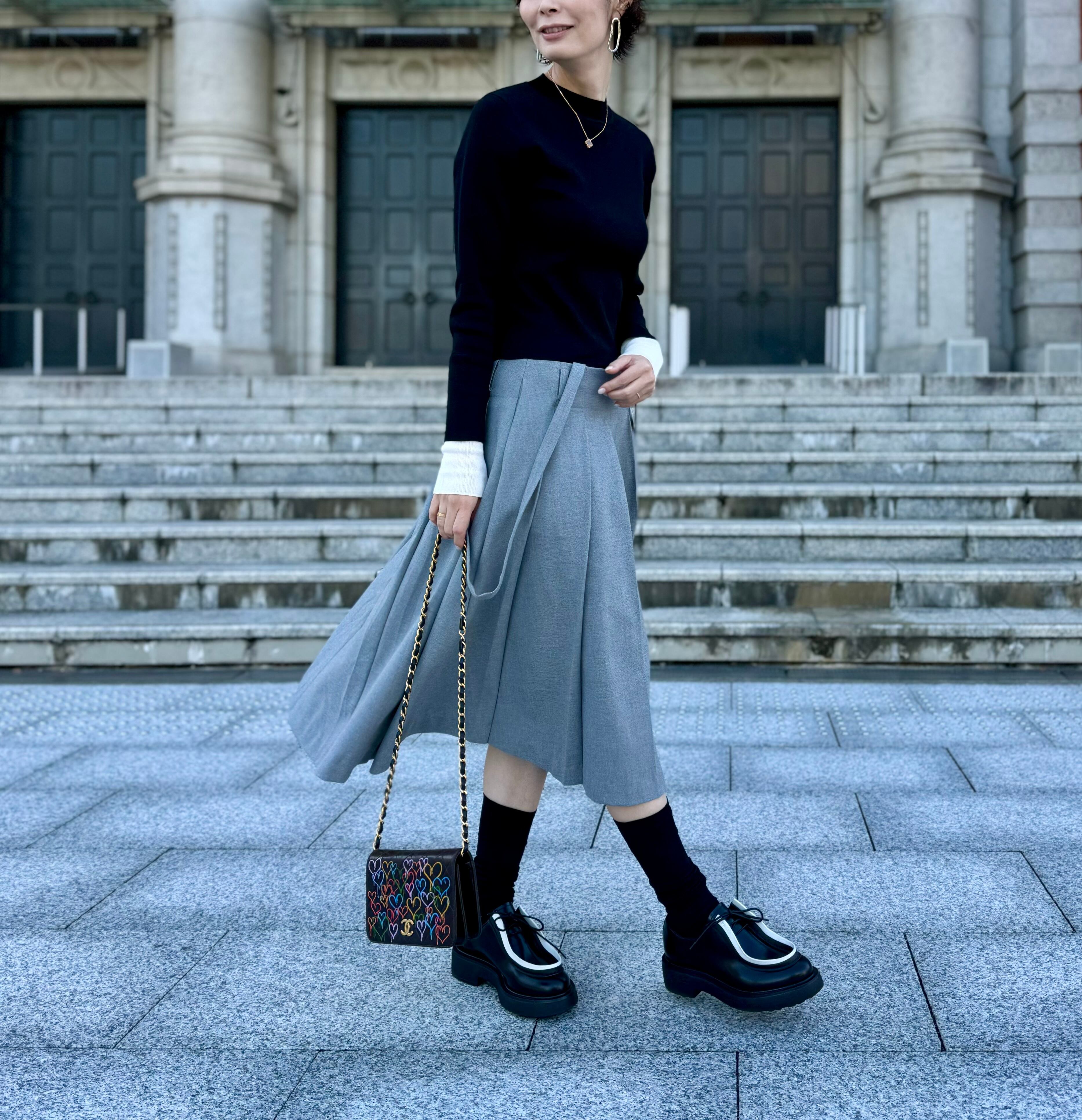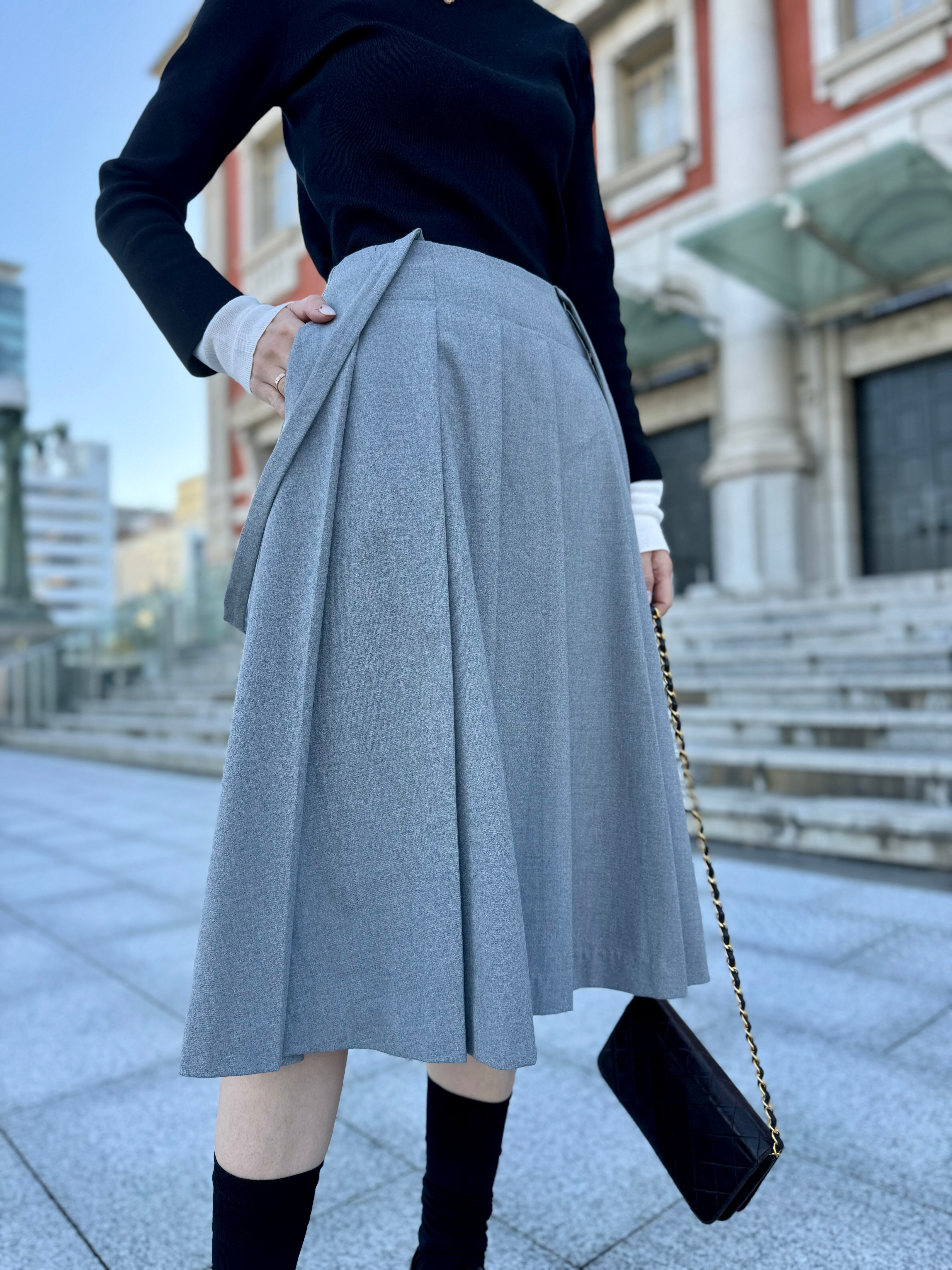 プリーツ幅を大きめに、トロミのある素材を使う事で大人なプリーツスカートに仕上げました。