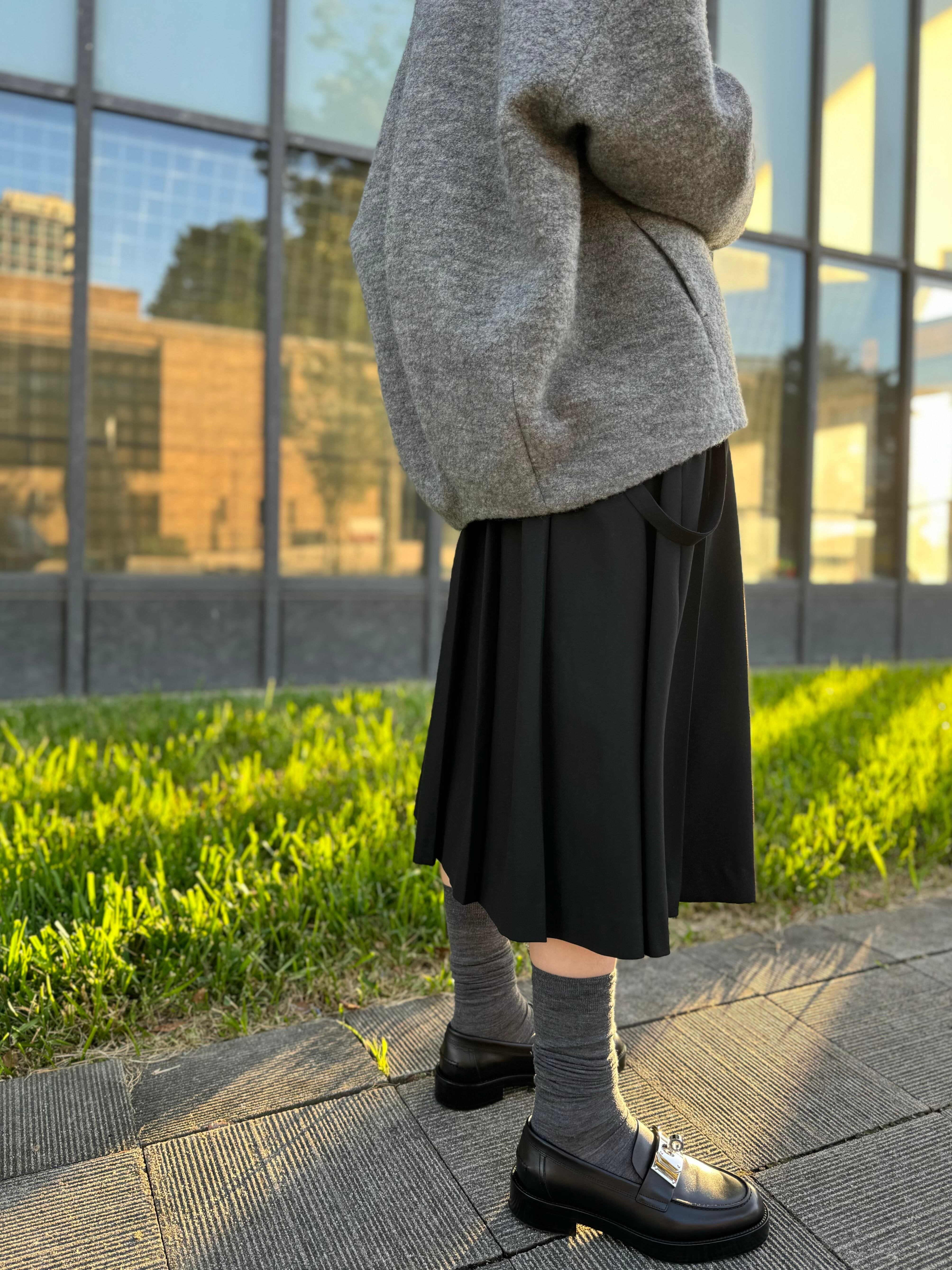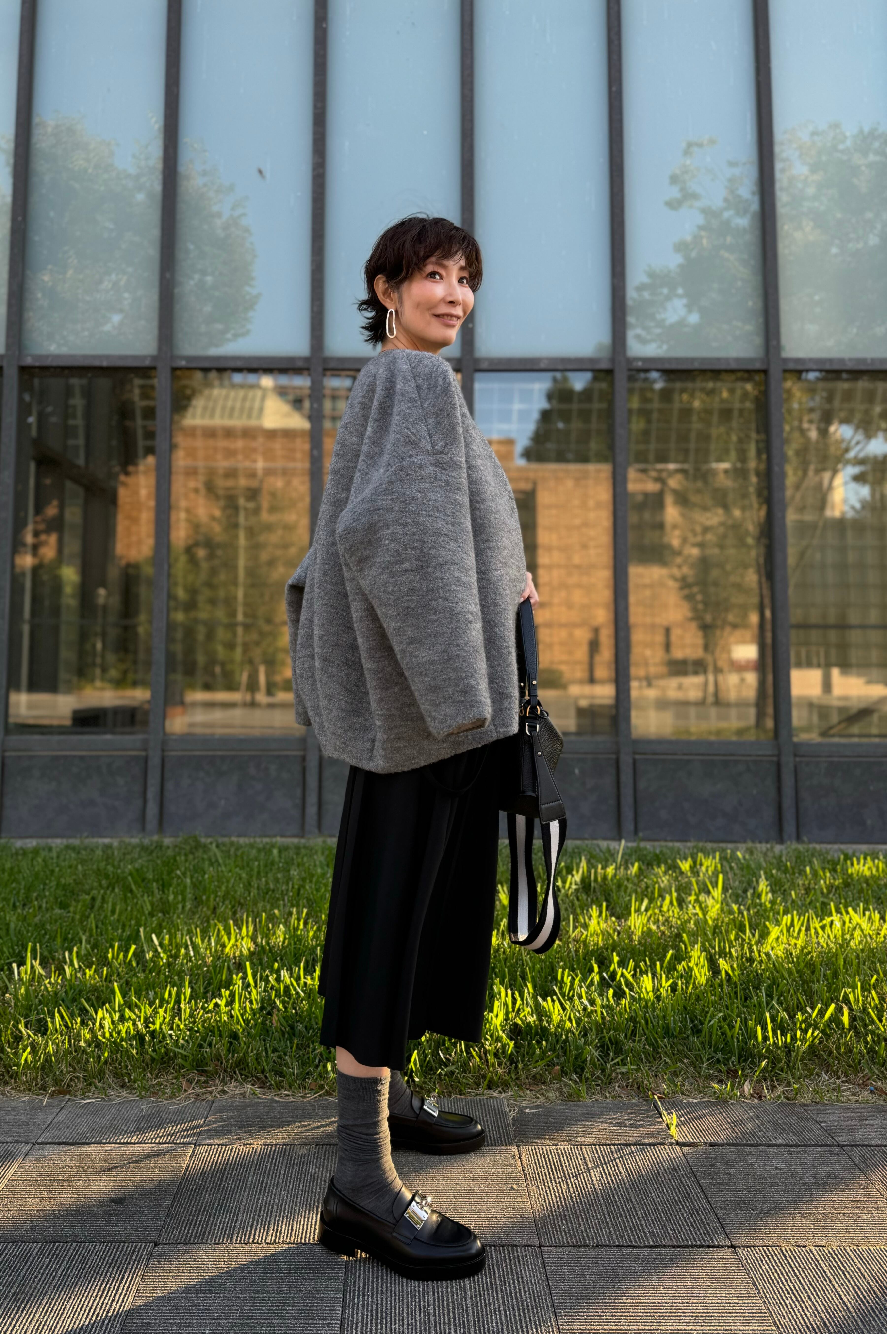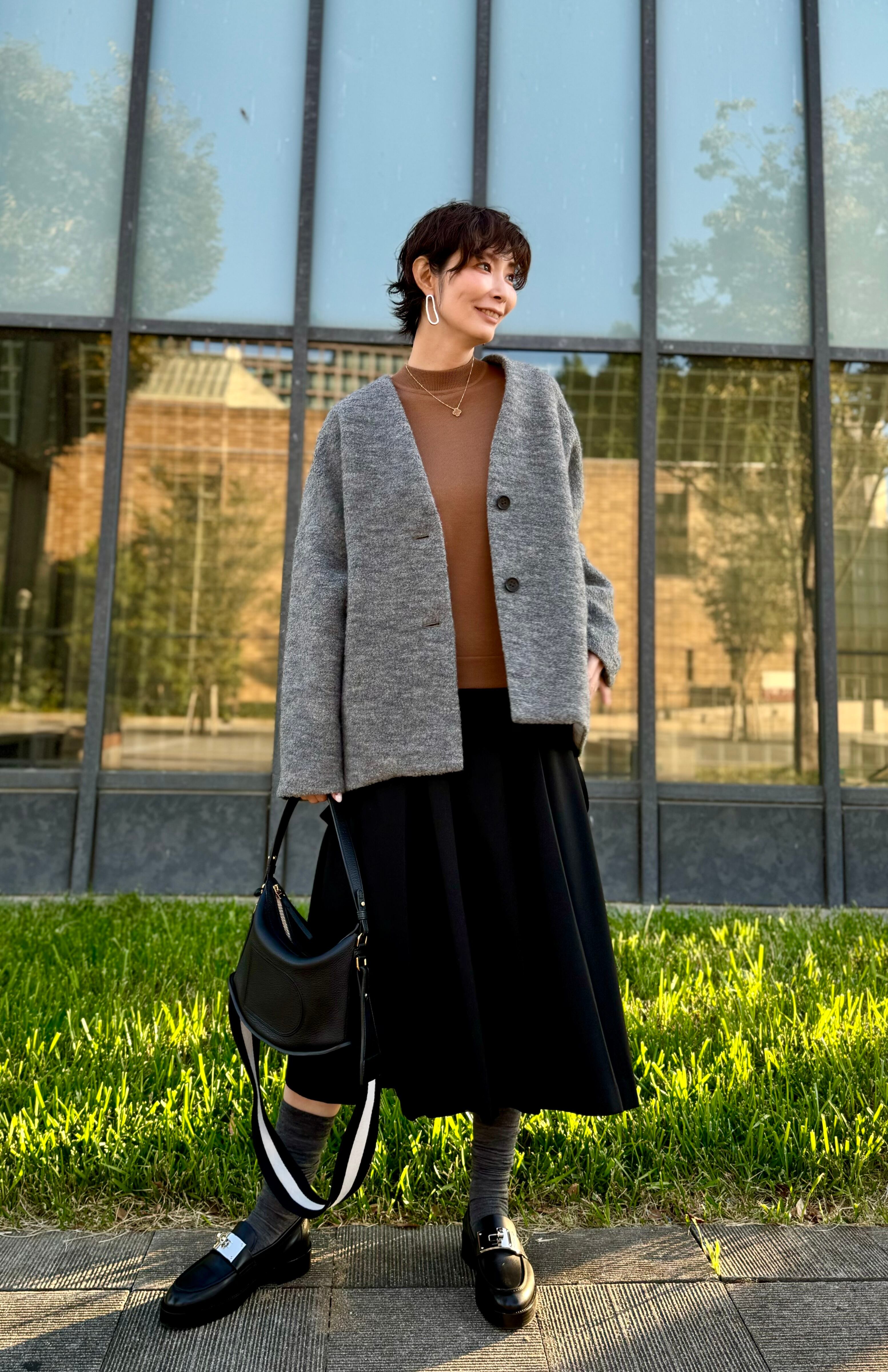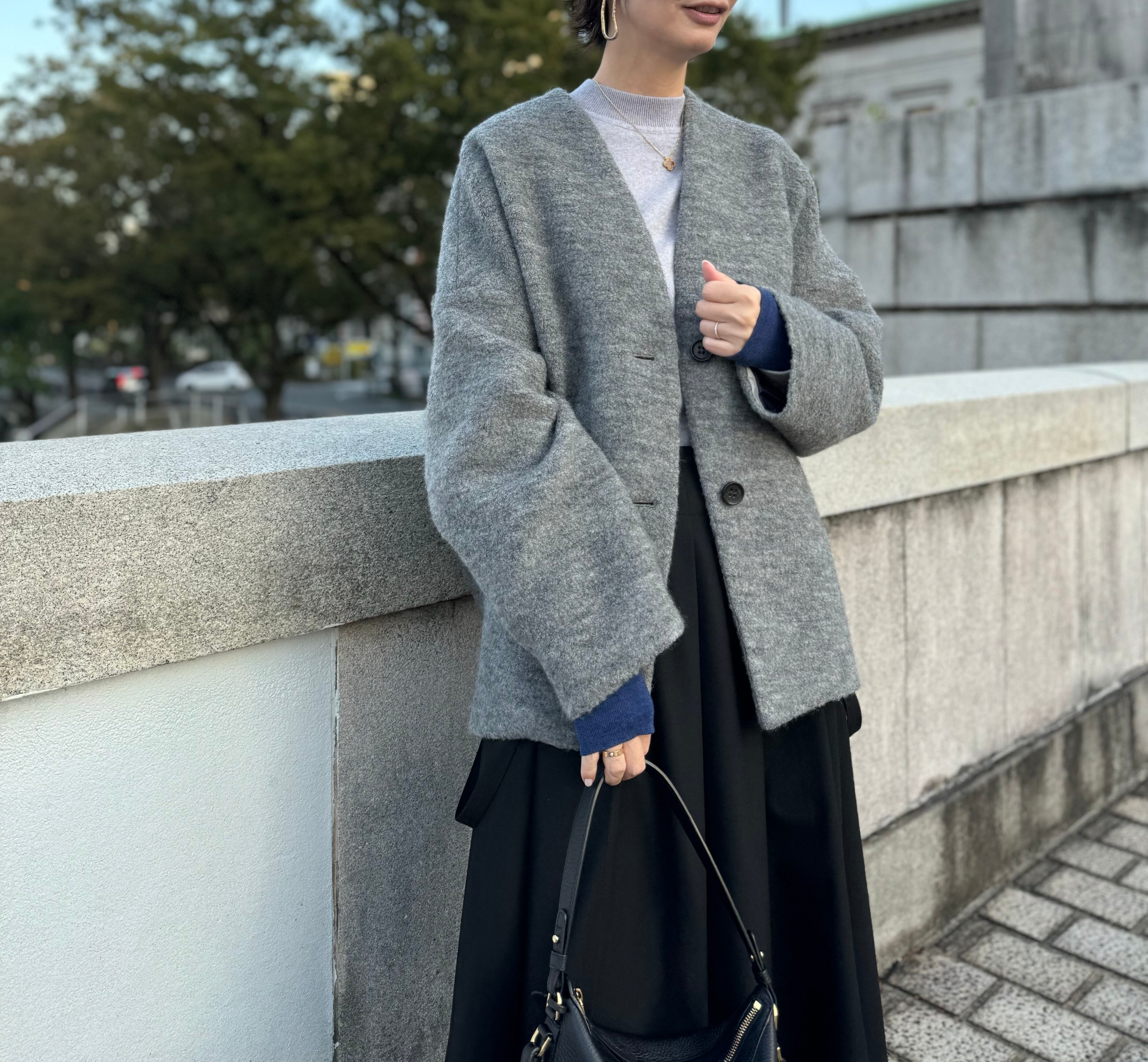 パンツスタイルにもスカート、ワンピースにも合わせやすくデザイン。