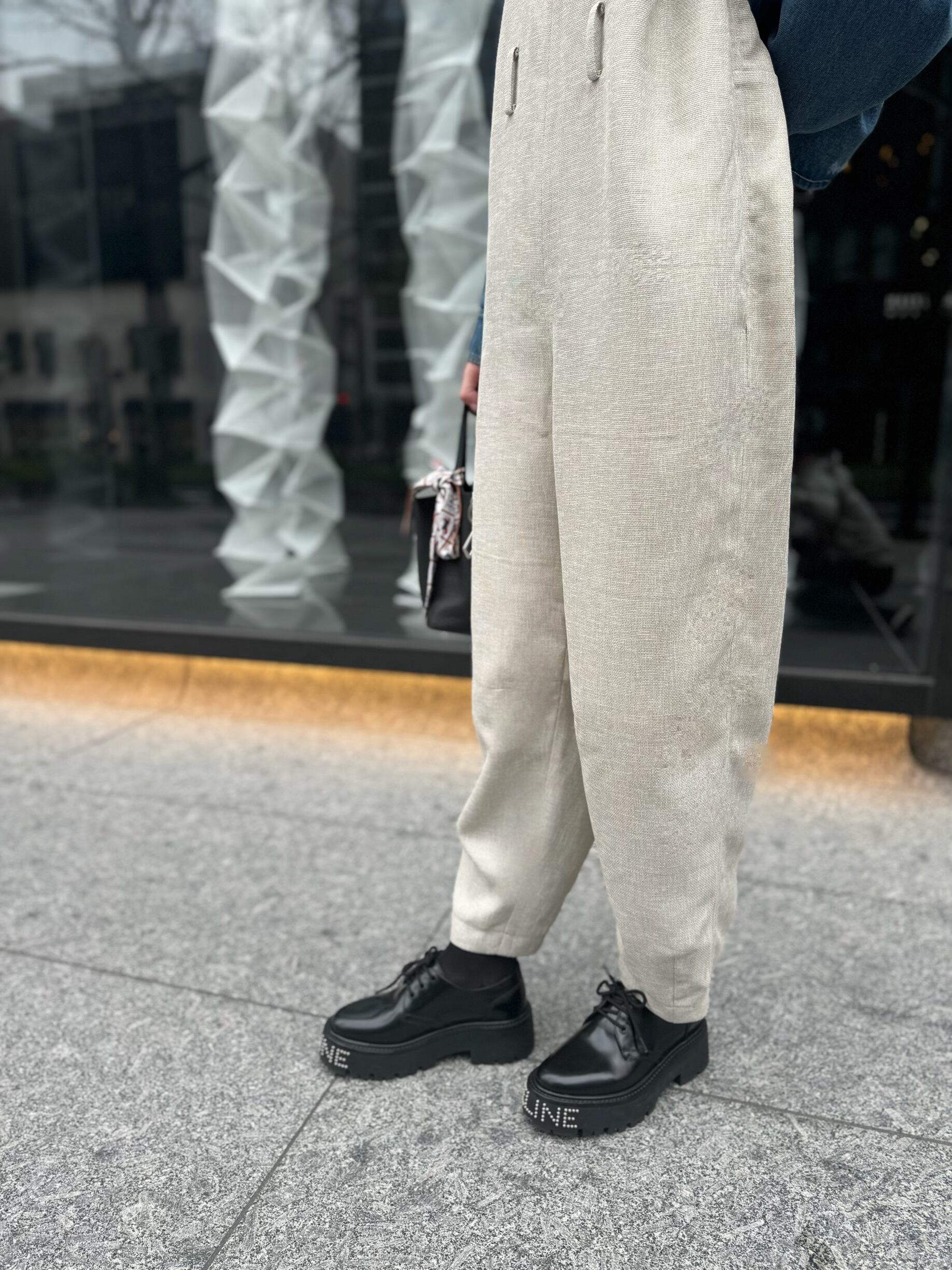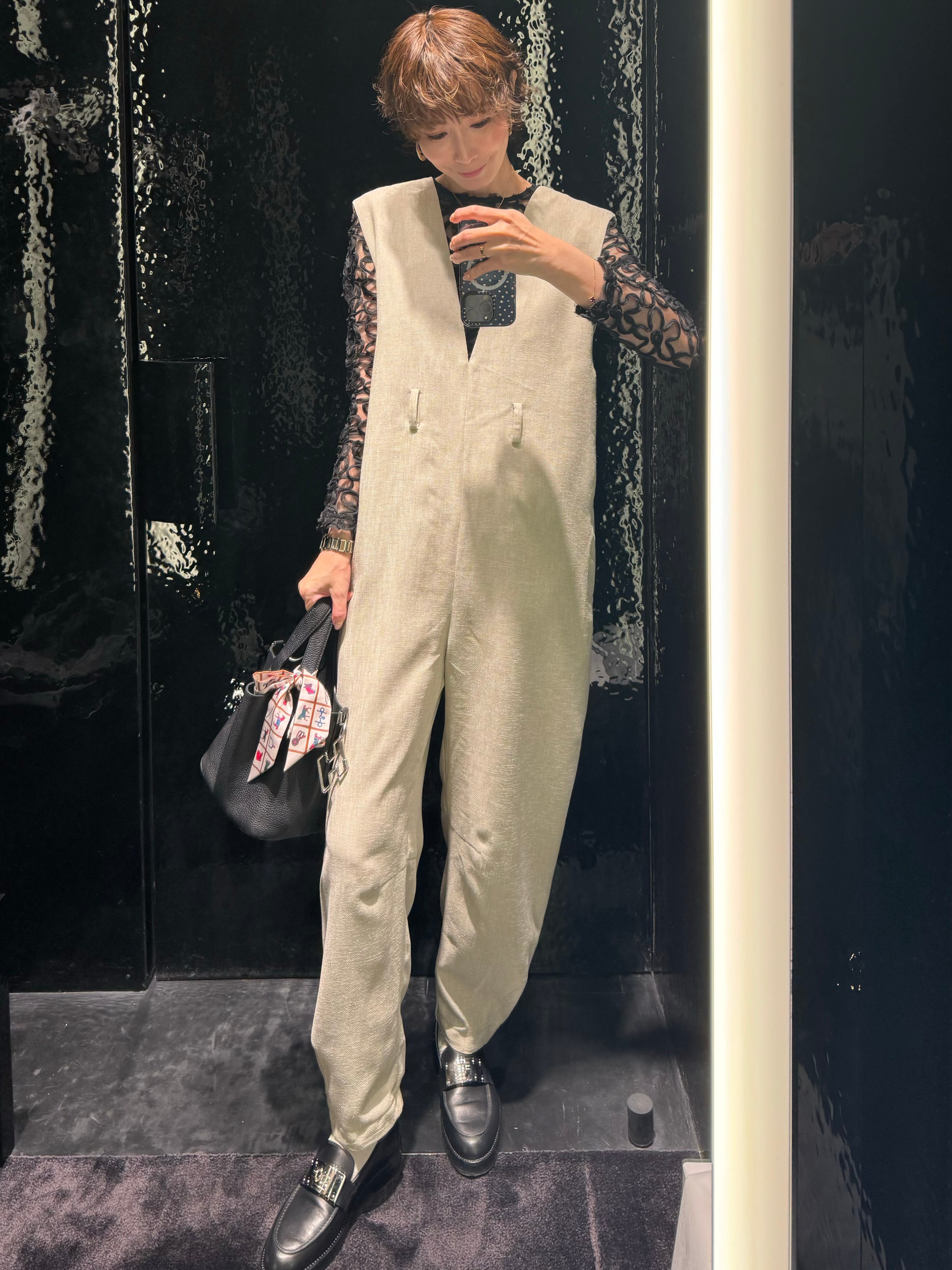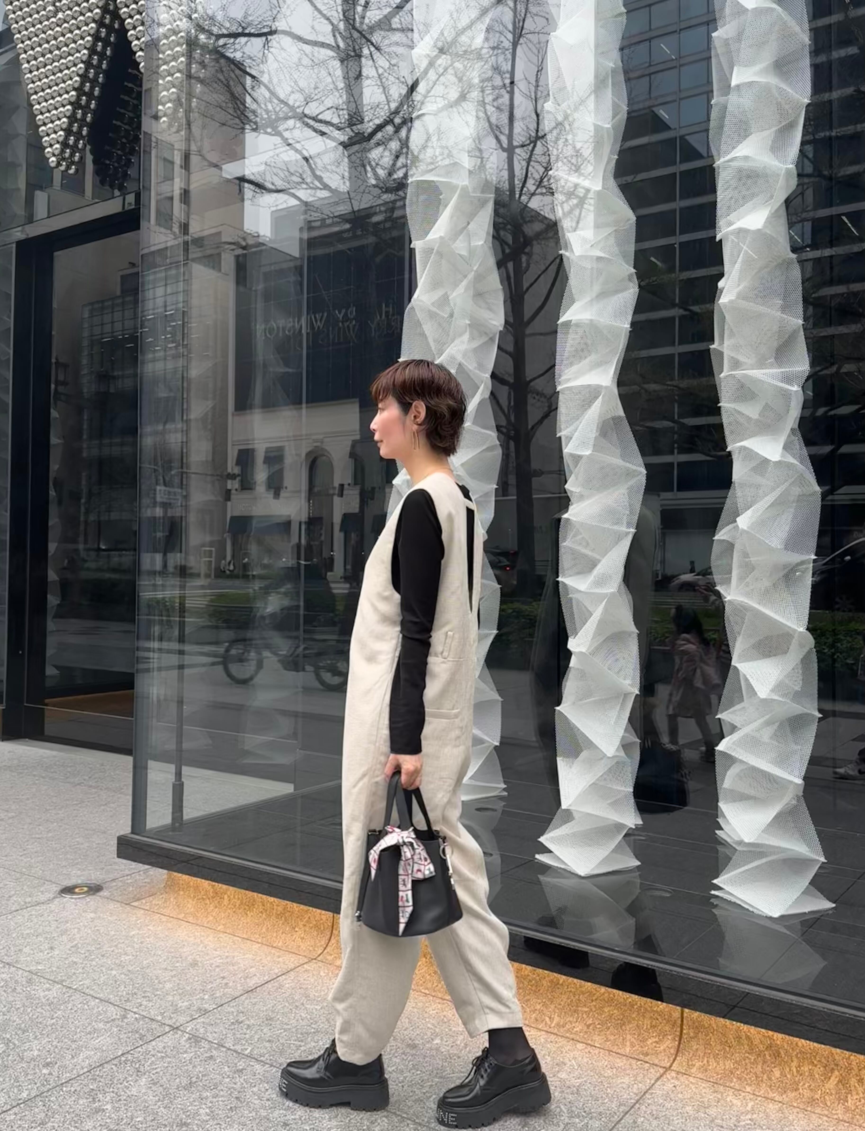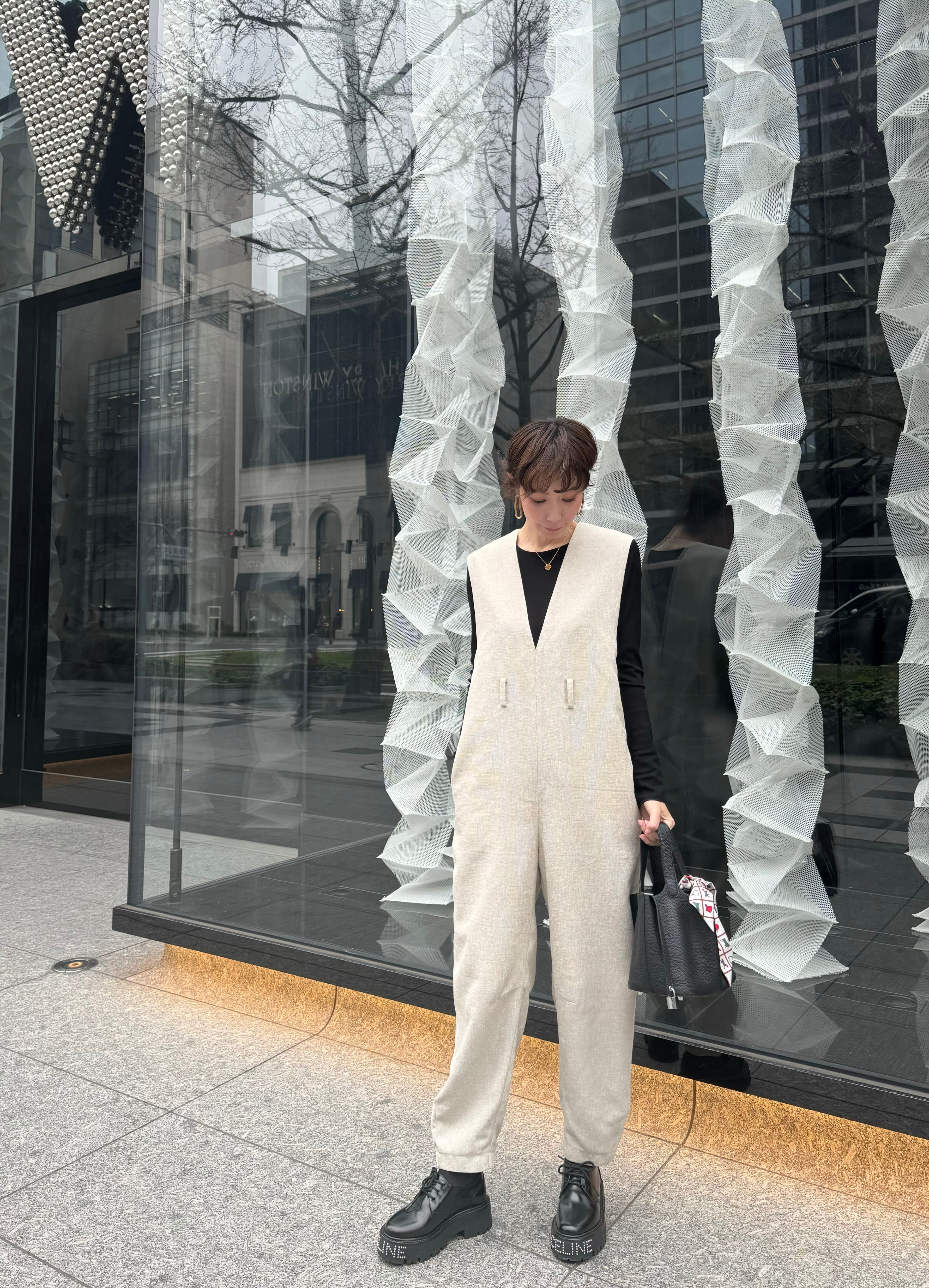 syncからは、よくありがちなオールインワンではなく、パンツ部分は立体を保ちつつ裾に向かって細くなるカーヴィーラインを提案。