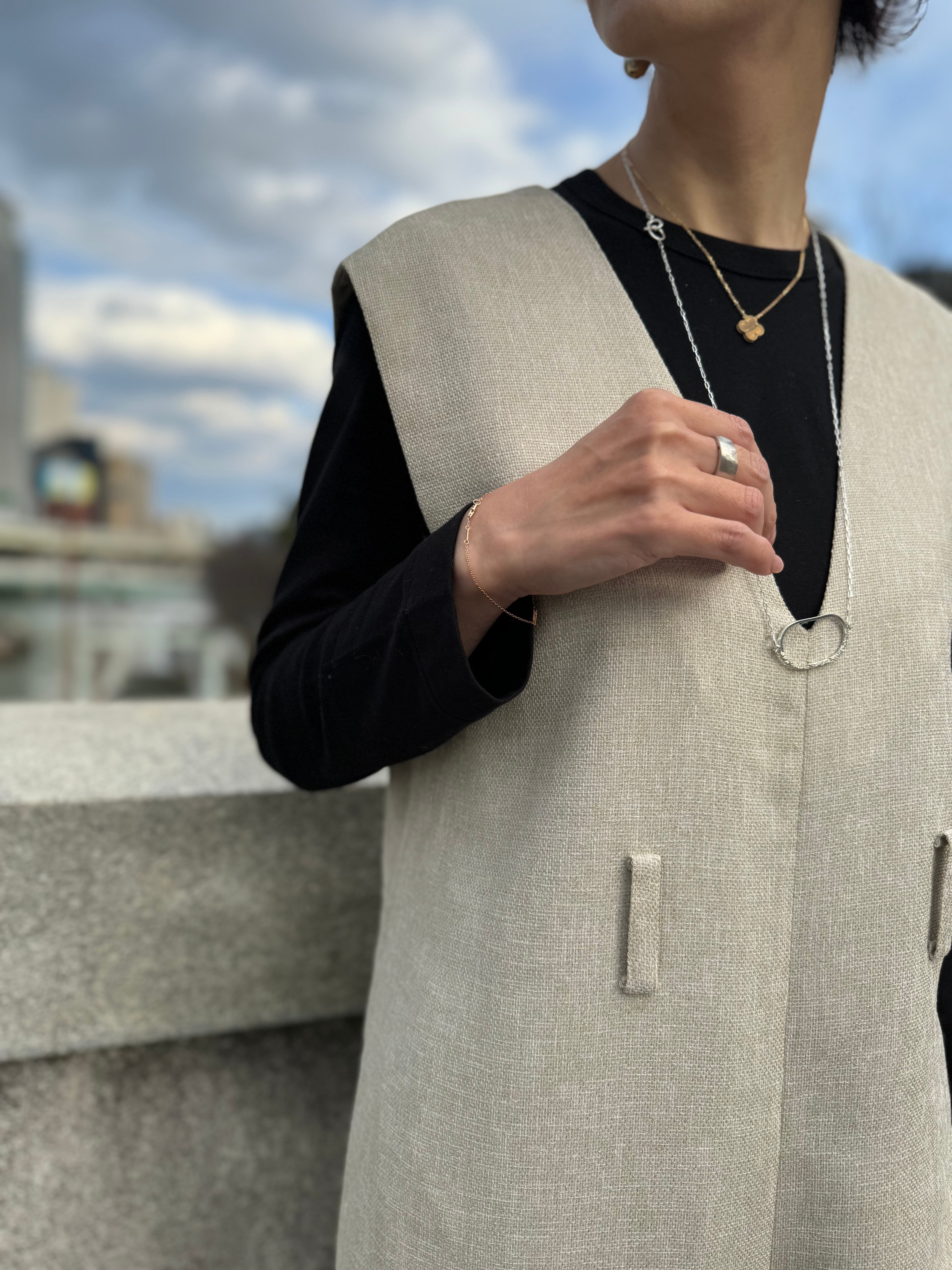 大人なナチュラルカラーは、綺麗目にもカジュアルにもと様々なシーンにマッチし、着回し力も抜群です。一枚あるだけで、コーディネートの幅がグッと広がります。