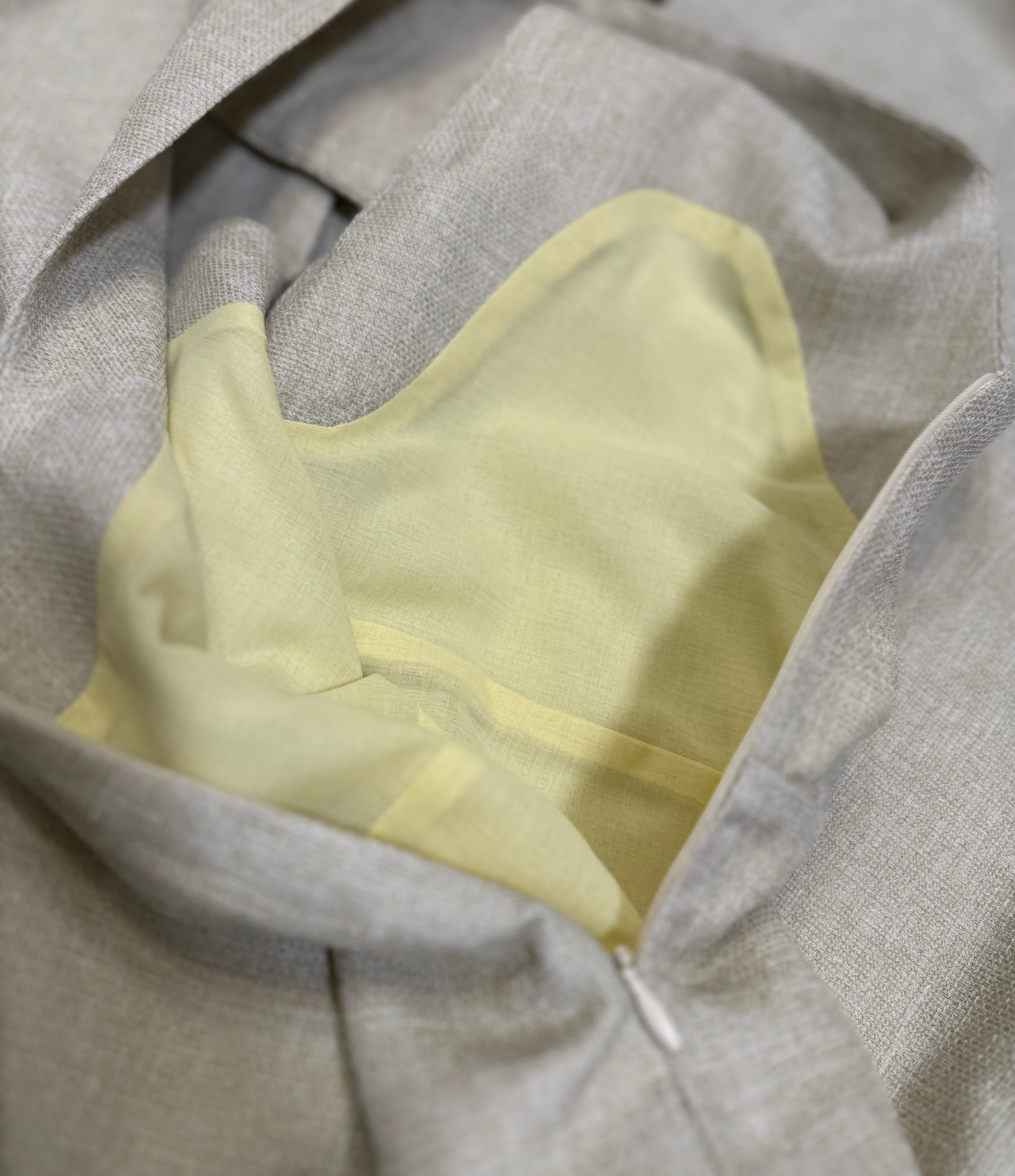 裏地には爽やかなイエローを採用、素材も夏に快適なサップに。