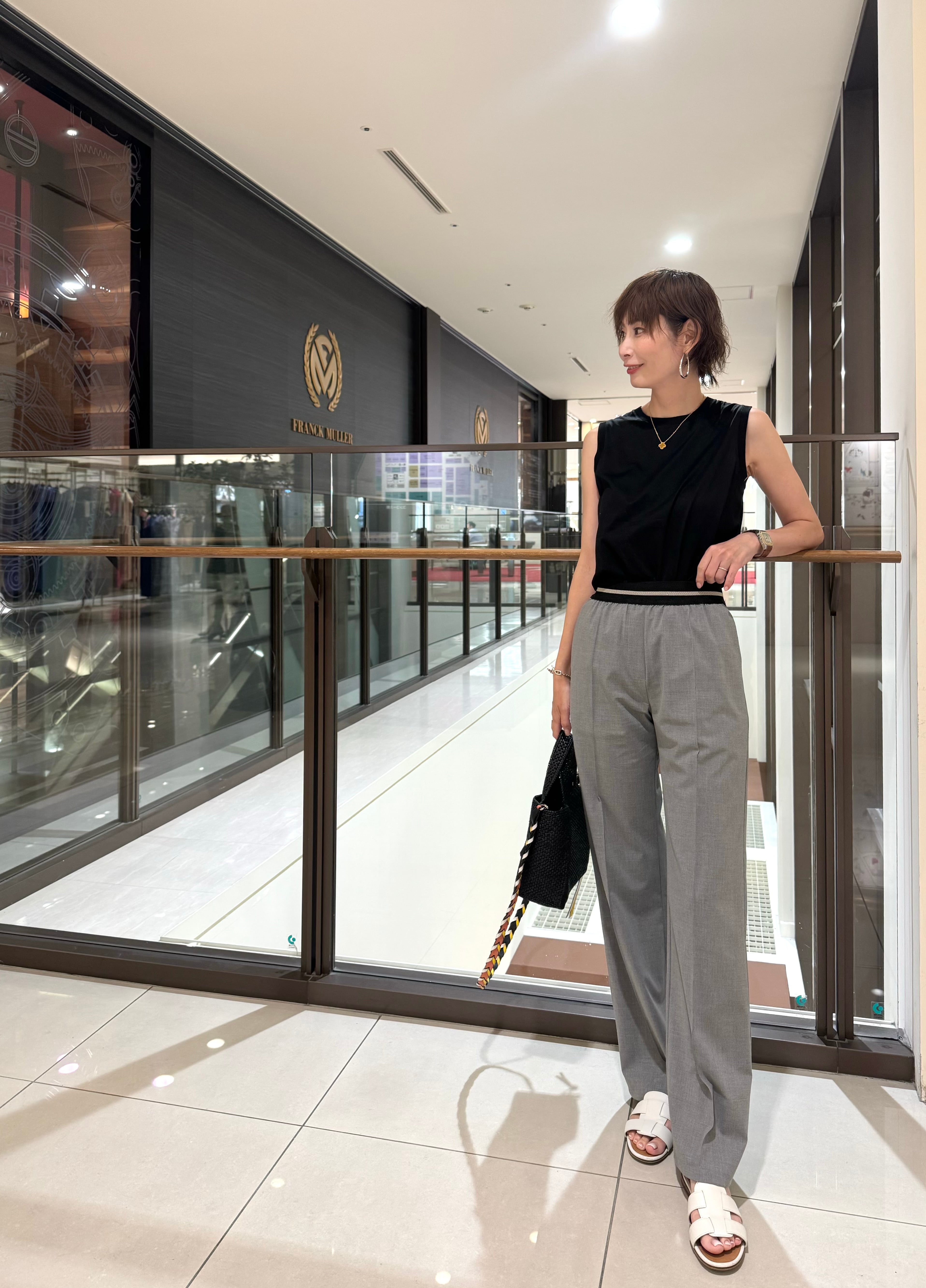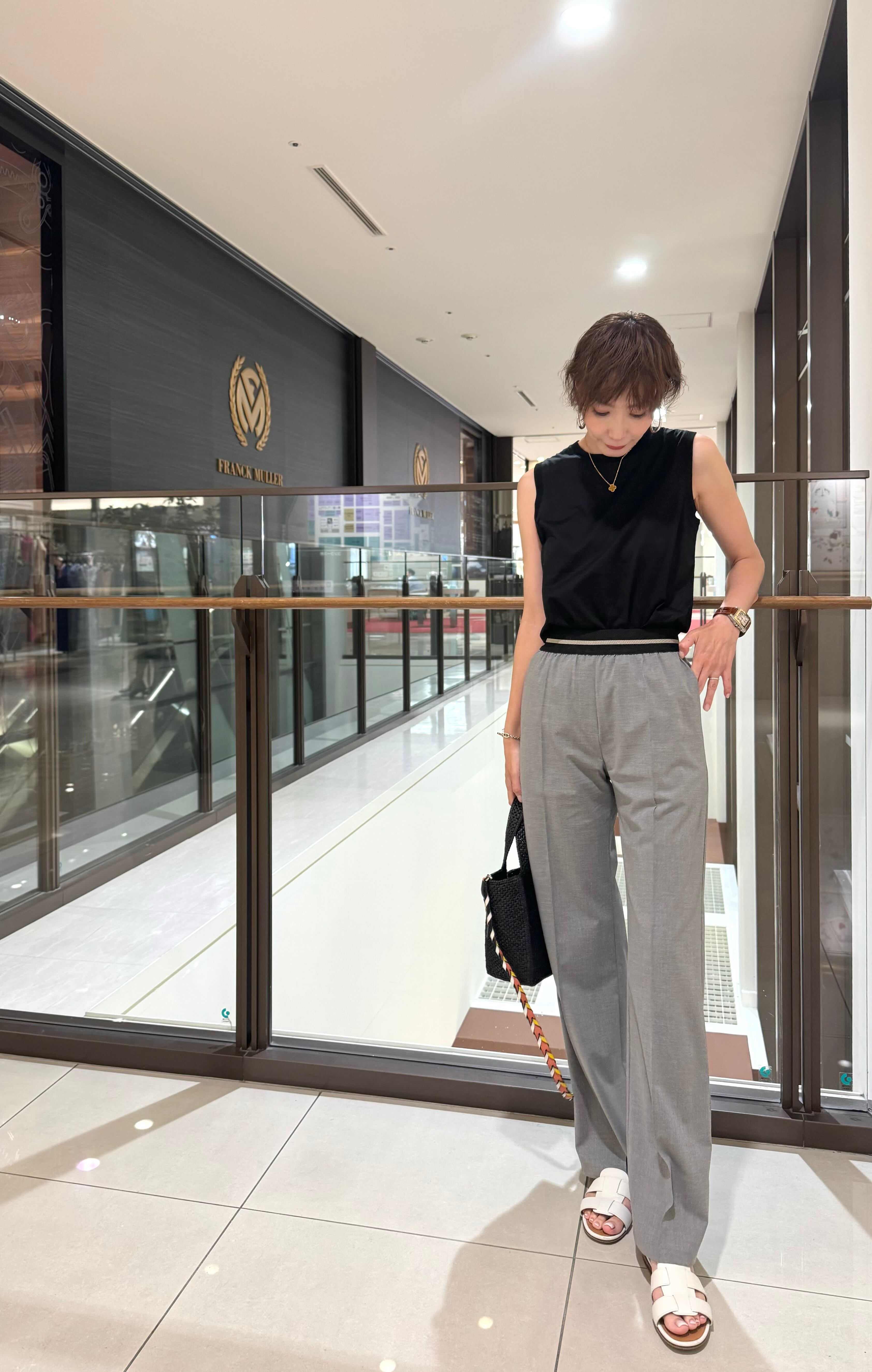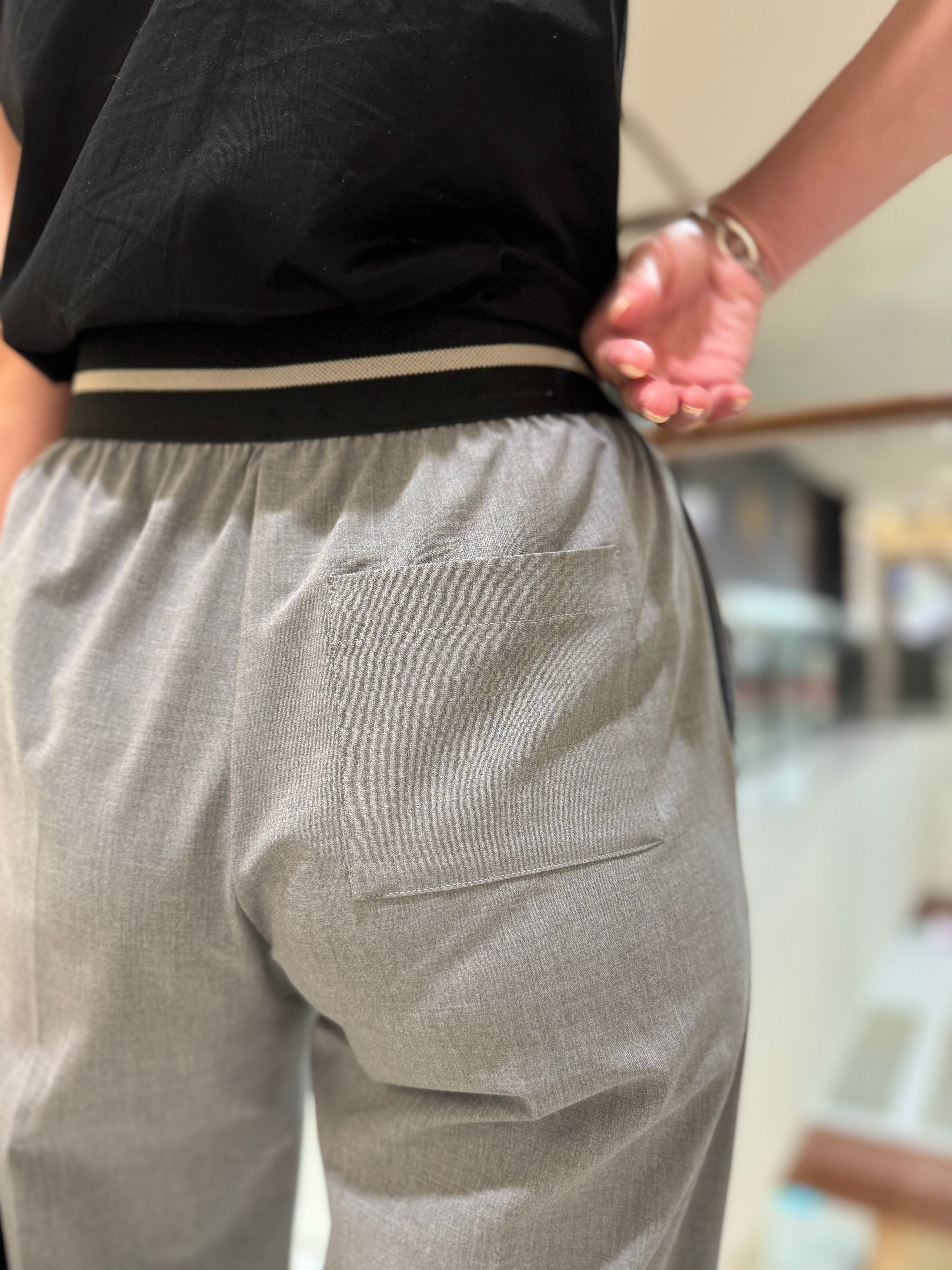 ウエストゴムは、ラインも入っているのでベルトをしなくてもポイントになり、もちろんトップスを上からかぶせての着用も、パンツラインがすっきり見えて美脚効果抜群のパンツです。