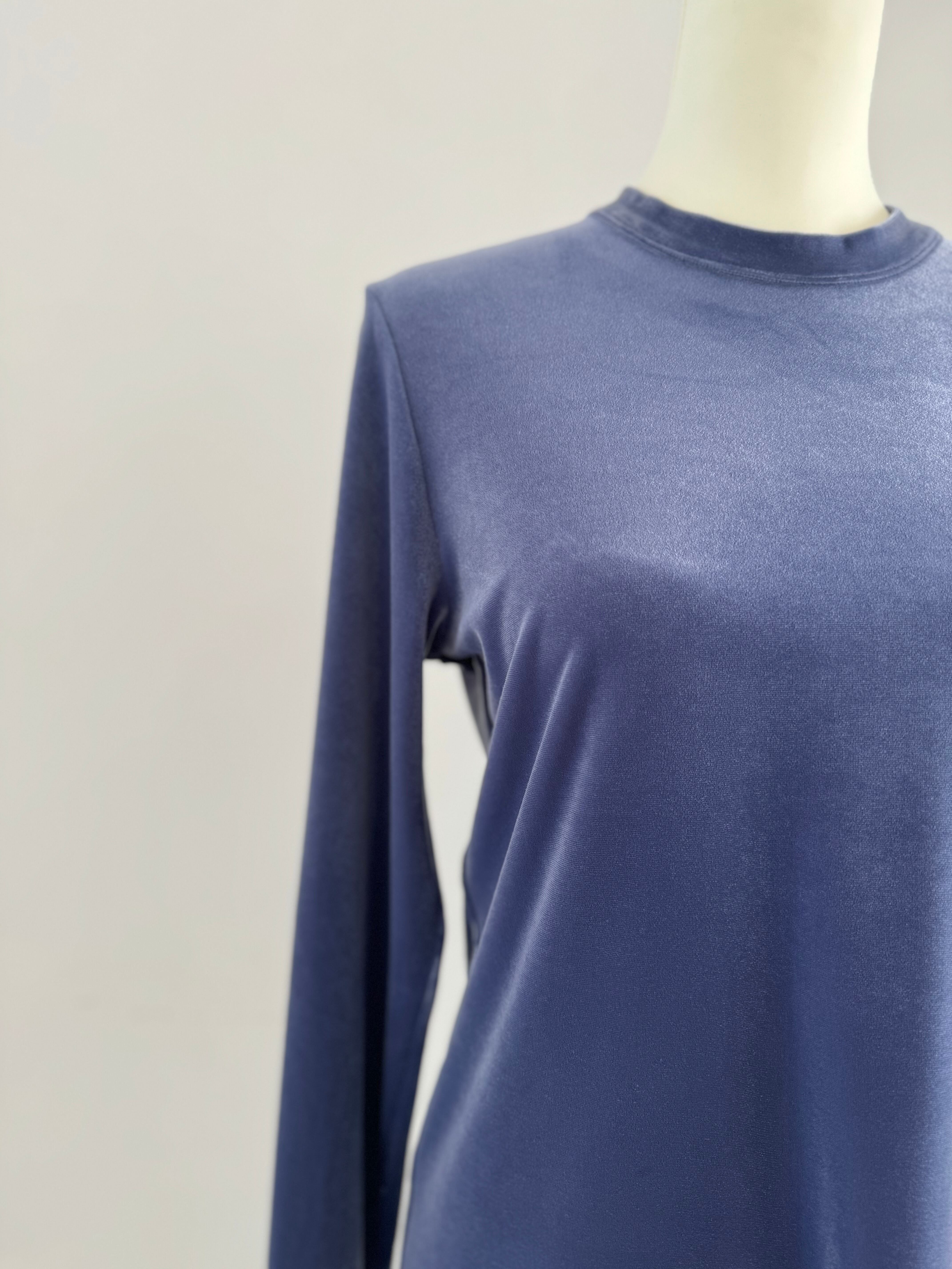 グレー味のあるブルー色は、どんなスタイルとも相性が良く、特別な日から普段使いまで幅広く活躍します。