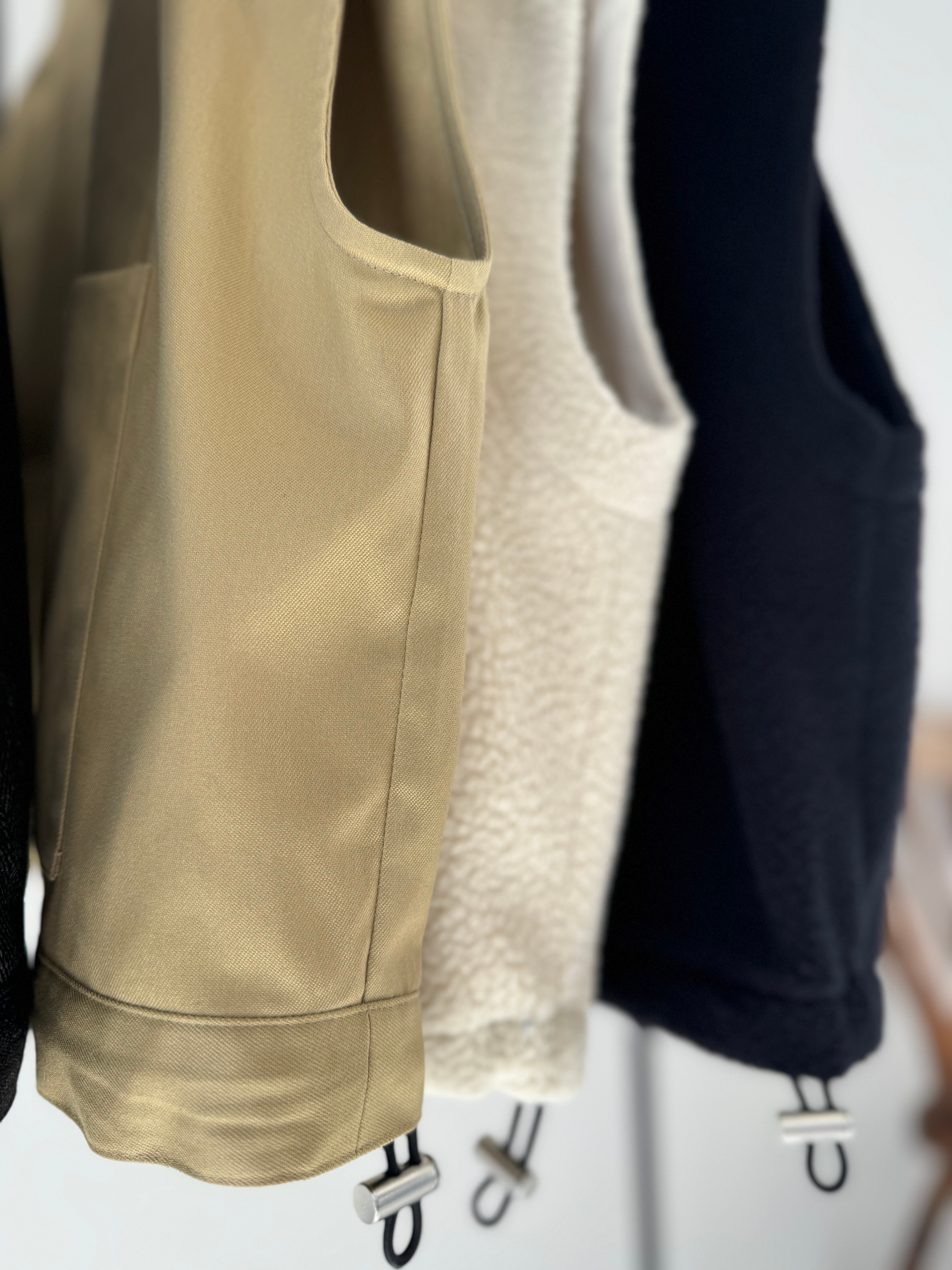 特に、秋冬のスタイリングにぴったりで、ダブルジッパー仕様により裾の内側にはゴムが施されているため、着用時の調整も簡単です。