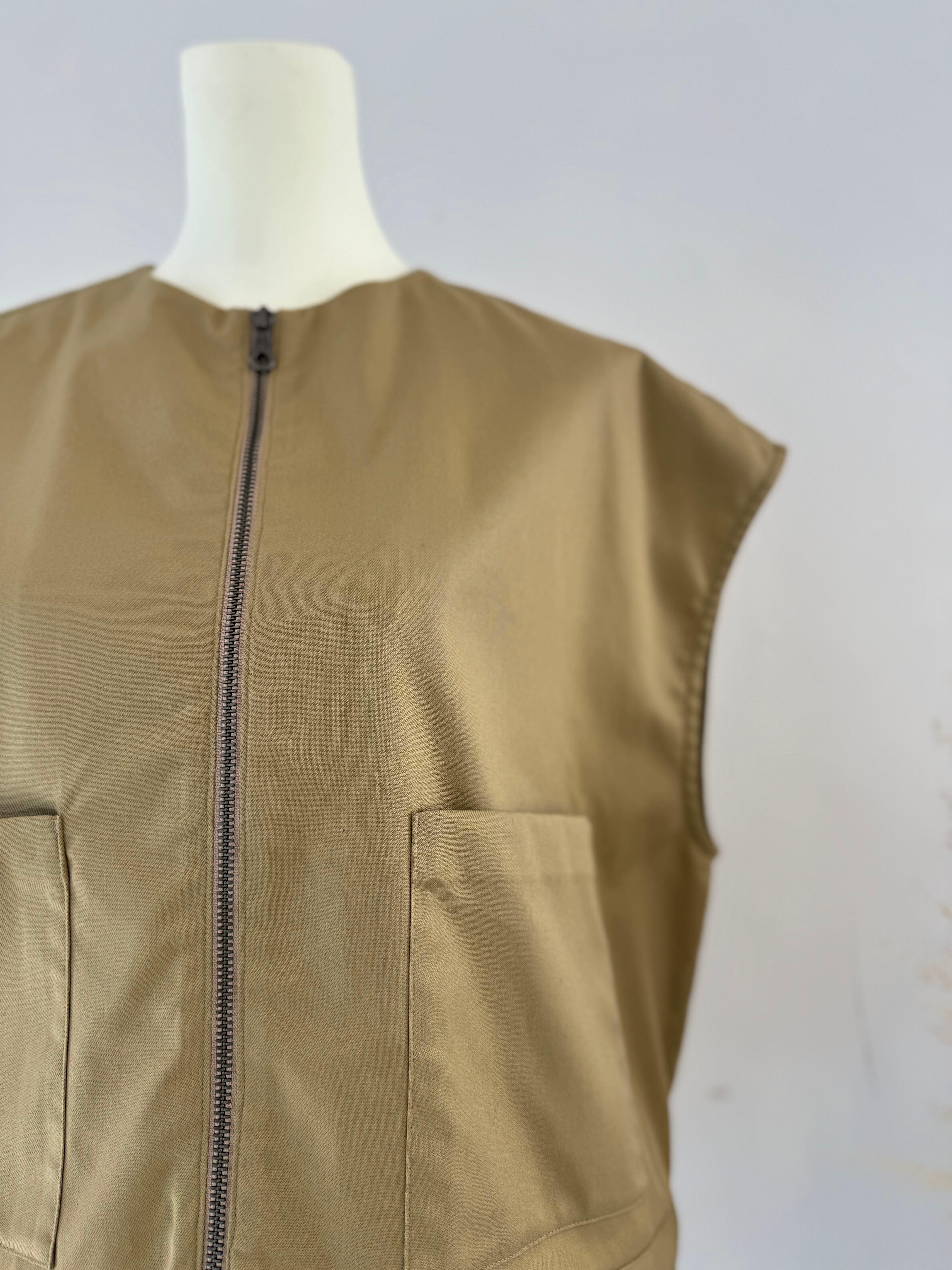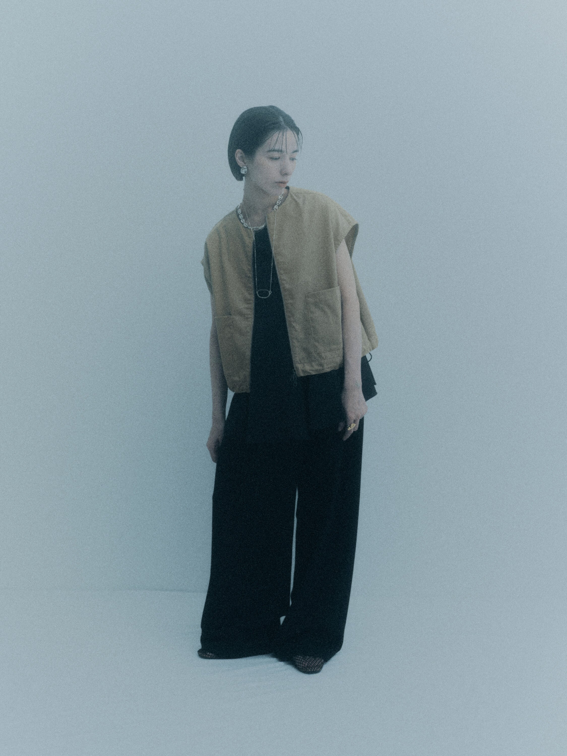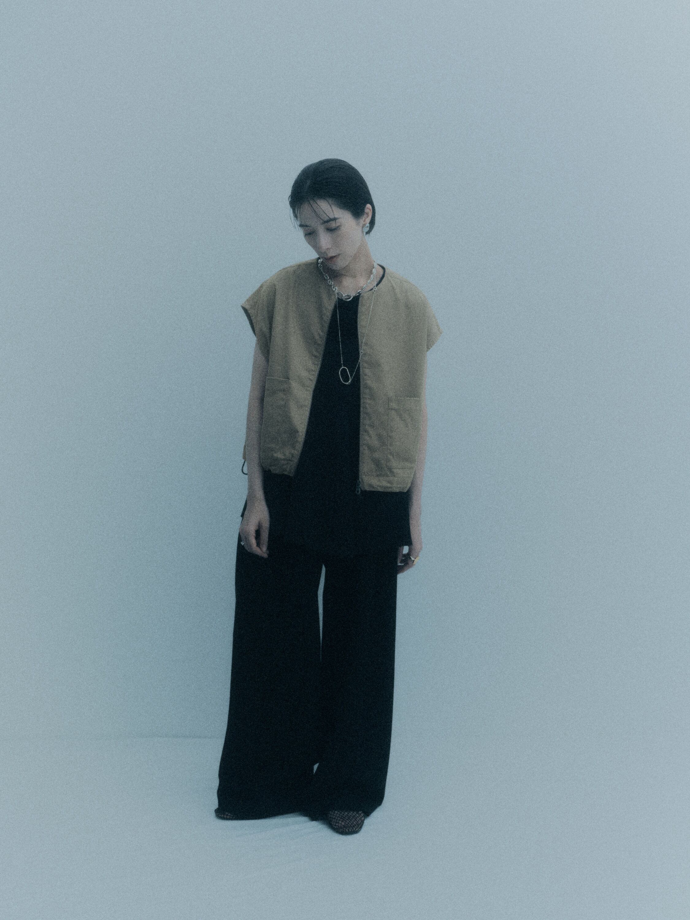 首元はノーカラーに仕上げているため、どんなインナーとも合わせやすく、スッキリとした印象を与えます。