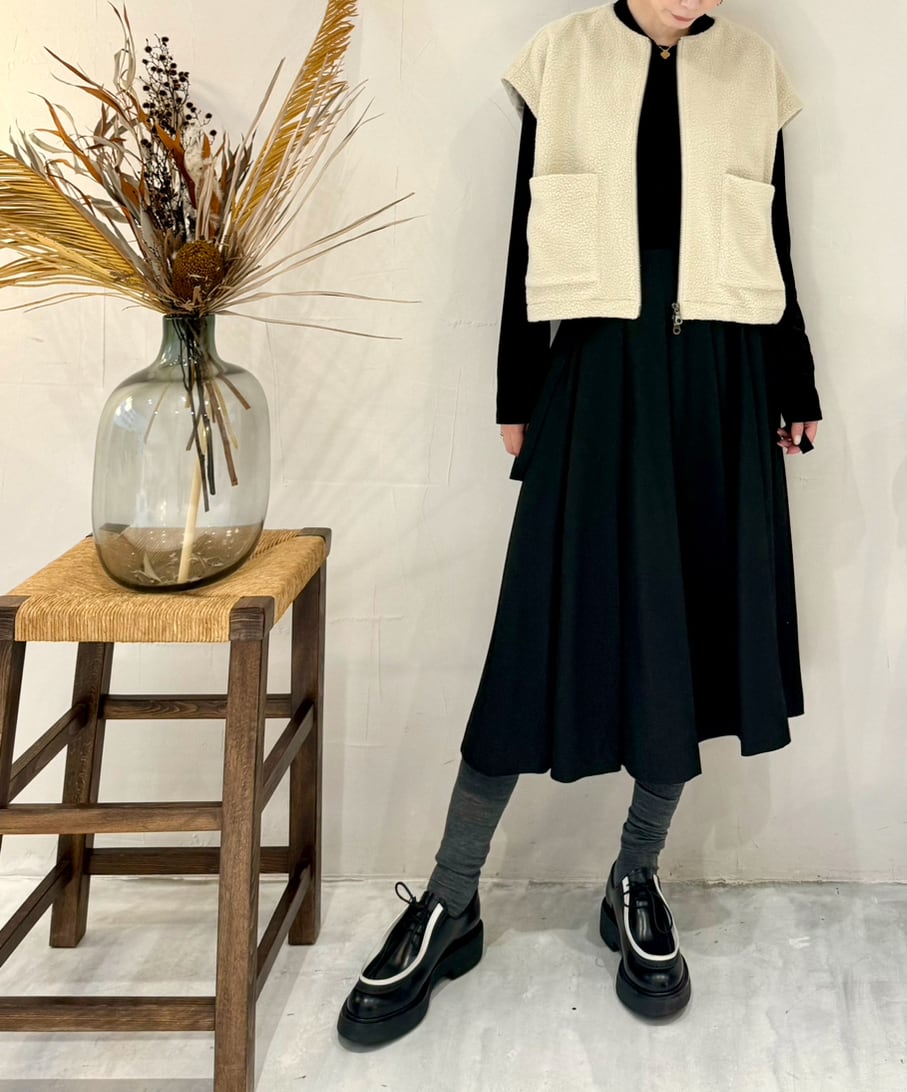 ボア素材はモコモコ感を抑えつつ、軽やかな着心地で仕立てられています。