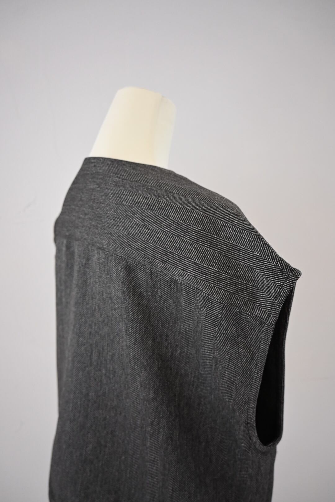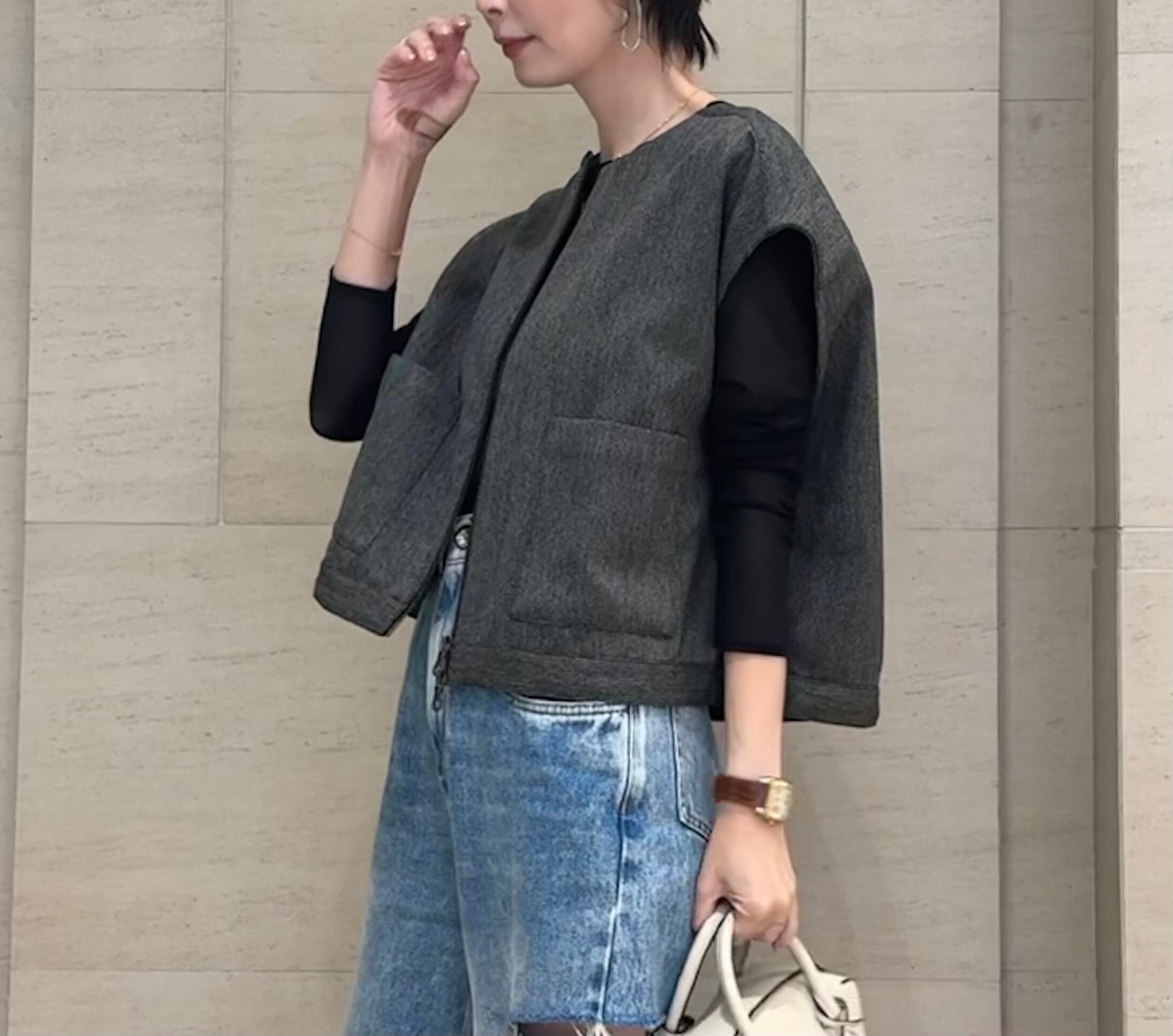 首元はノーカラーに仕上げているため、どんなインナーとも合わせやすく、