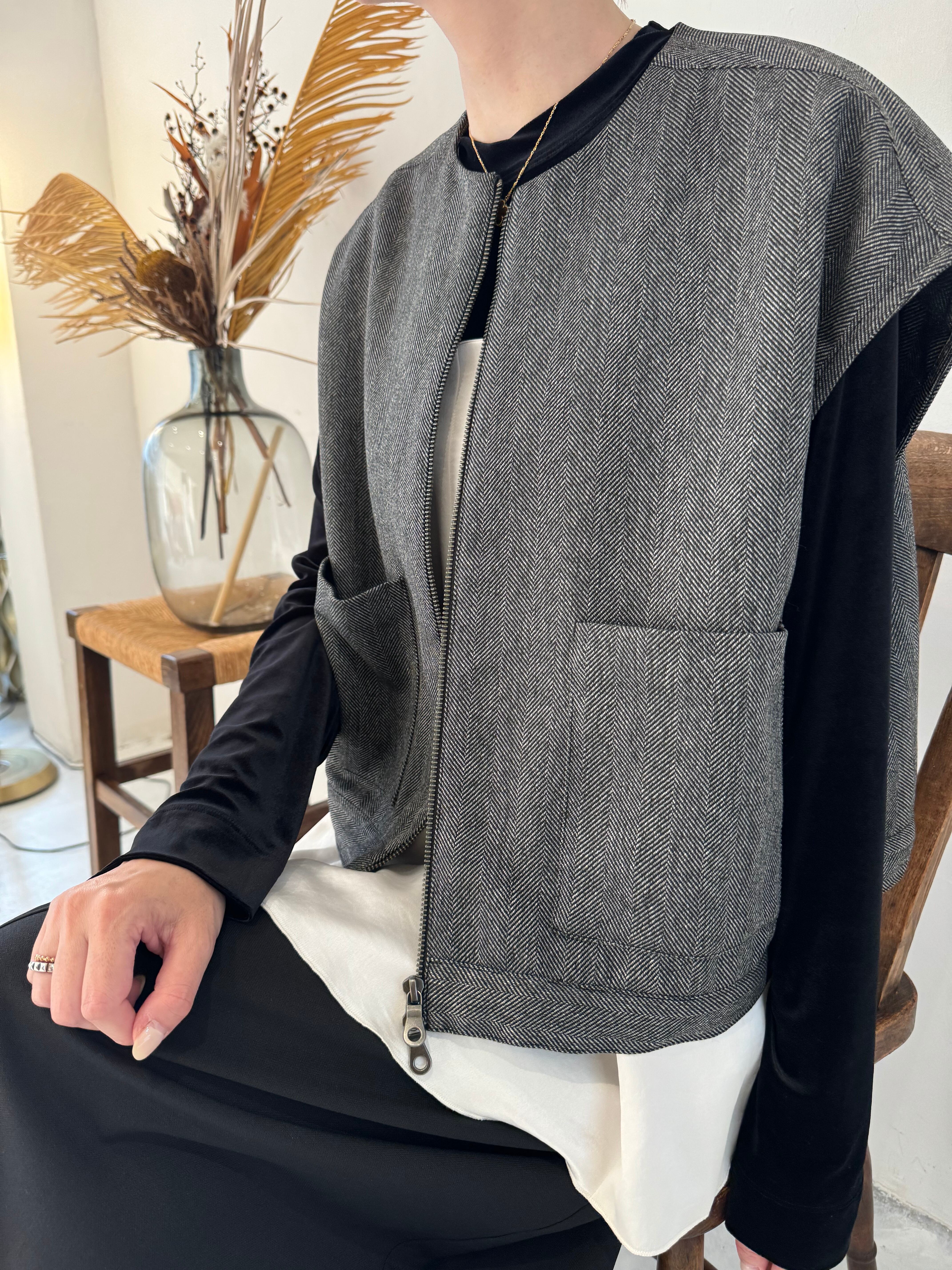 秋冬のファッションにぴったりな風合いで、ダブルジッパー仕様にしたことで、裾の内側にはゴムが施されており、着用時の調整も簡単です。