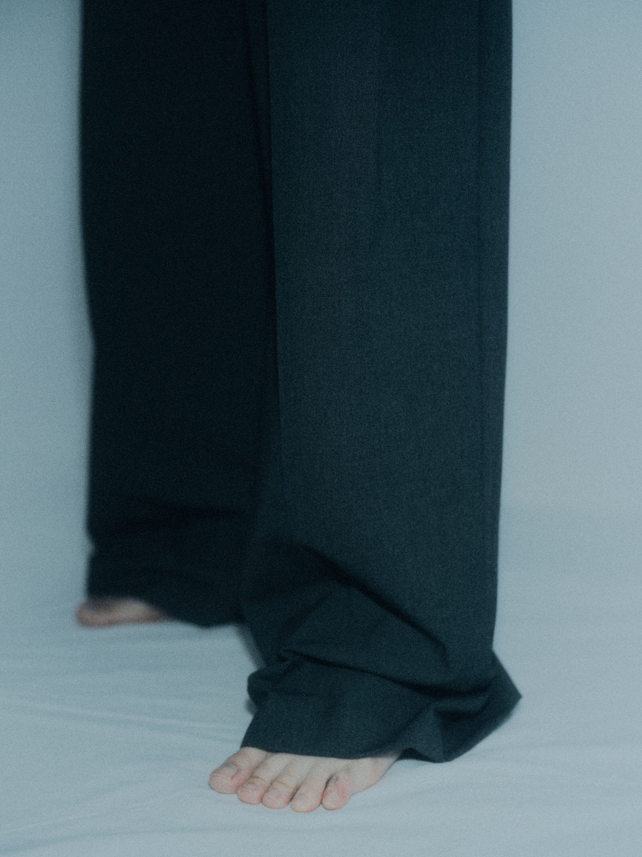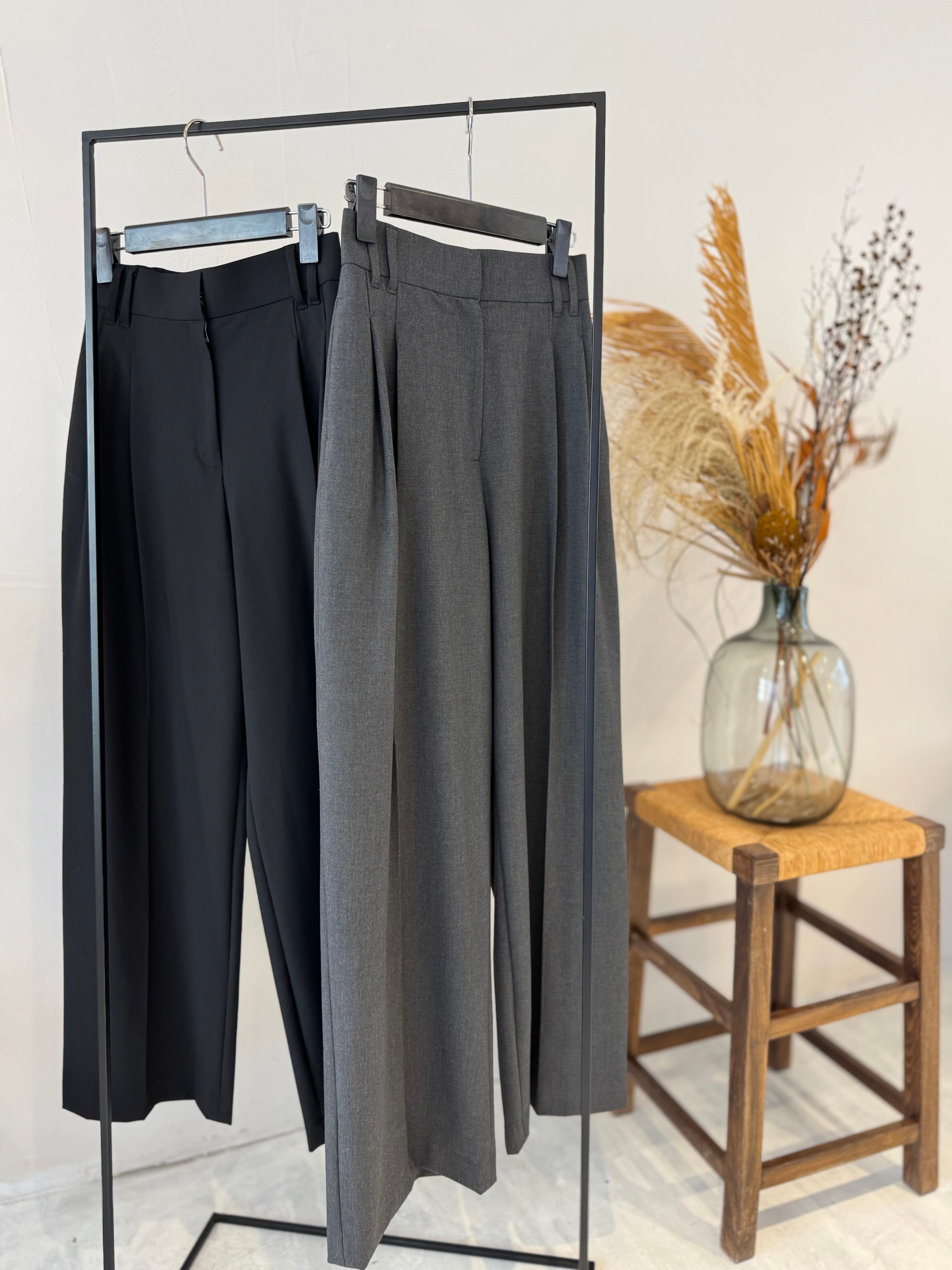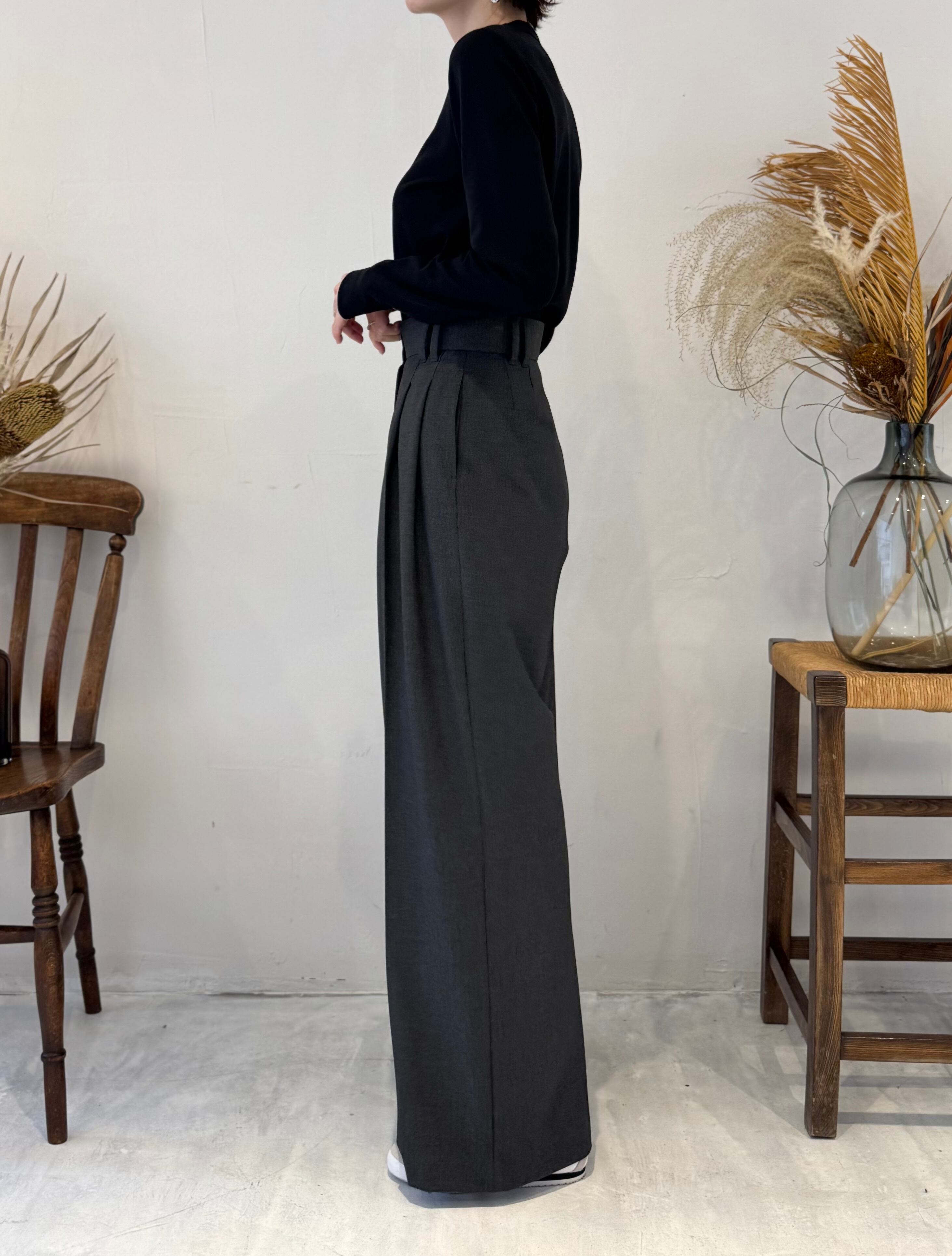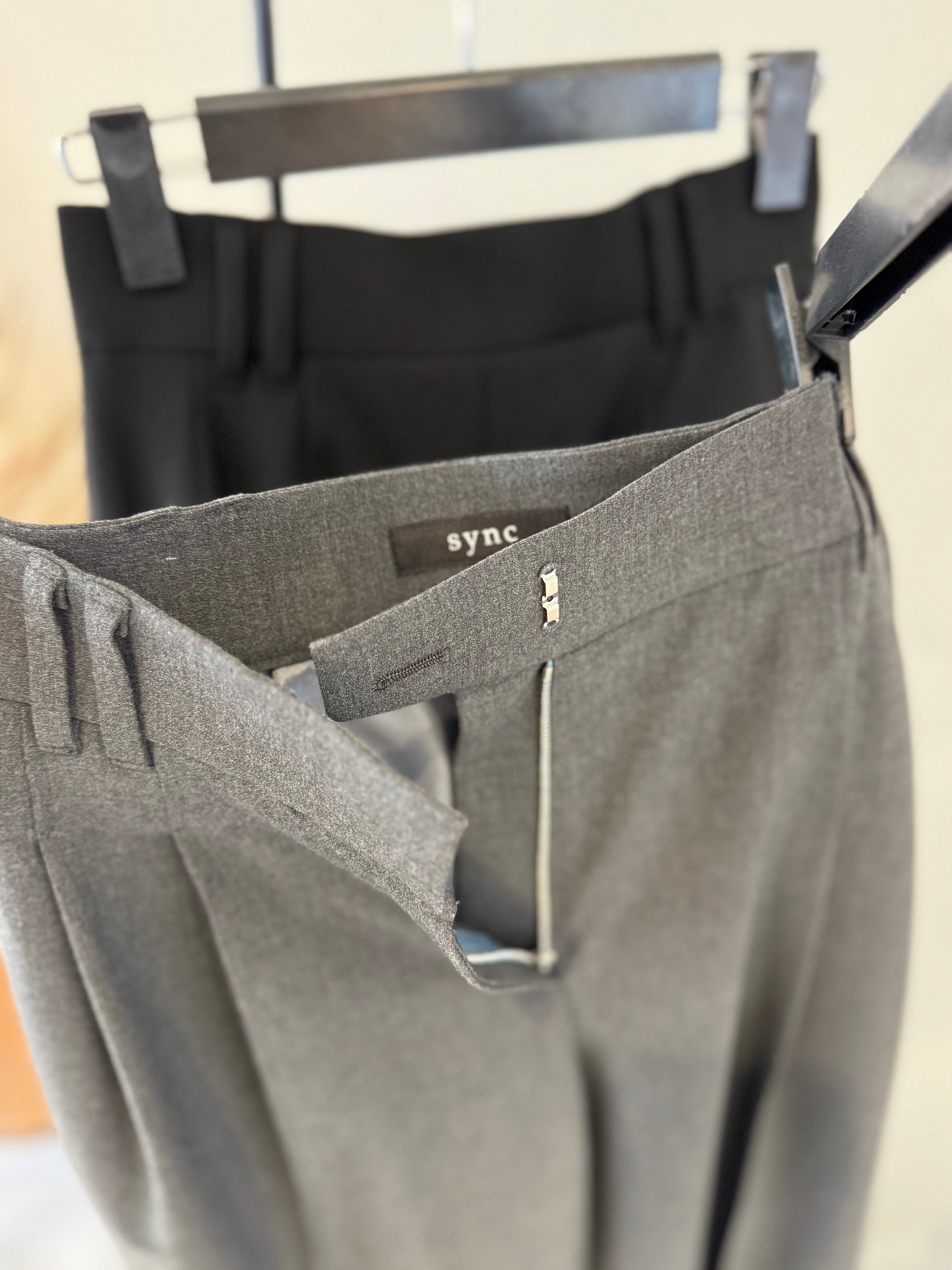 ストレートシルエットのタックストレートパンツは、ビジネスシーンからカジュアルな日常まで、幅広いスタイリングが可能。