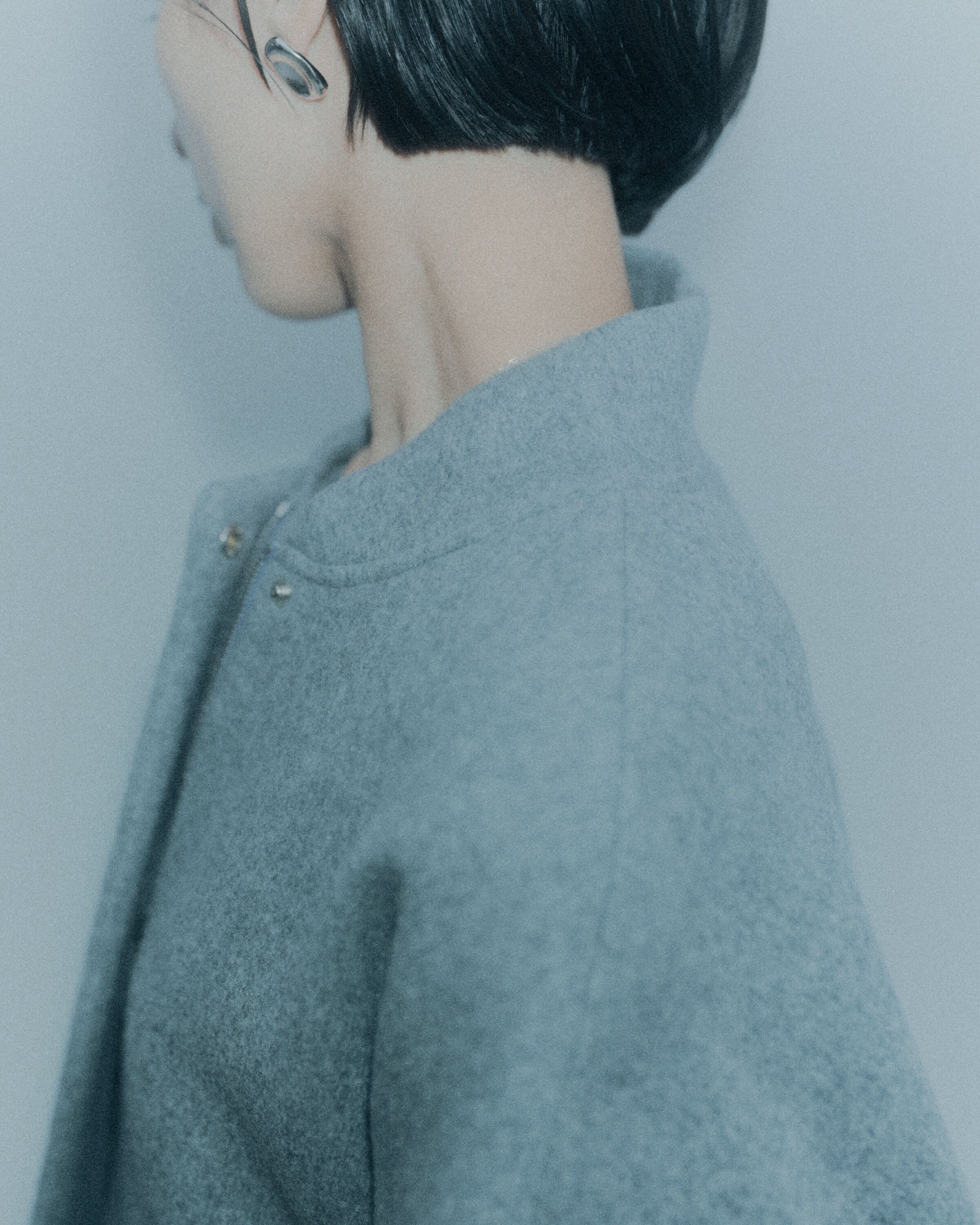 syncらしい、特徴的な後ろコクーンシルエットは、優雅なラインを描き、身体の動きを美しく見せる効果があります。