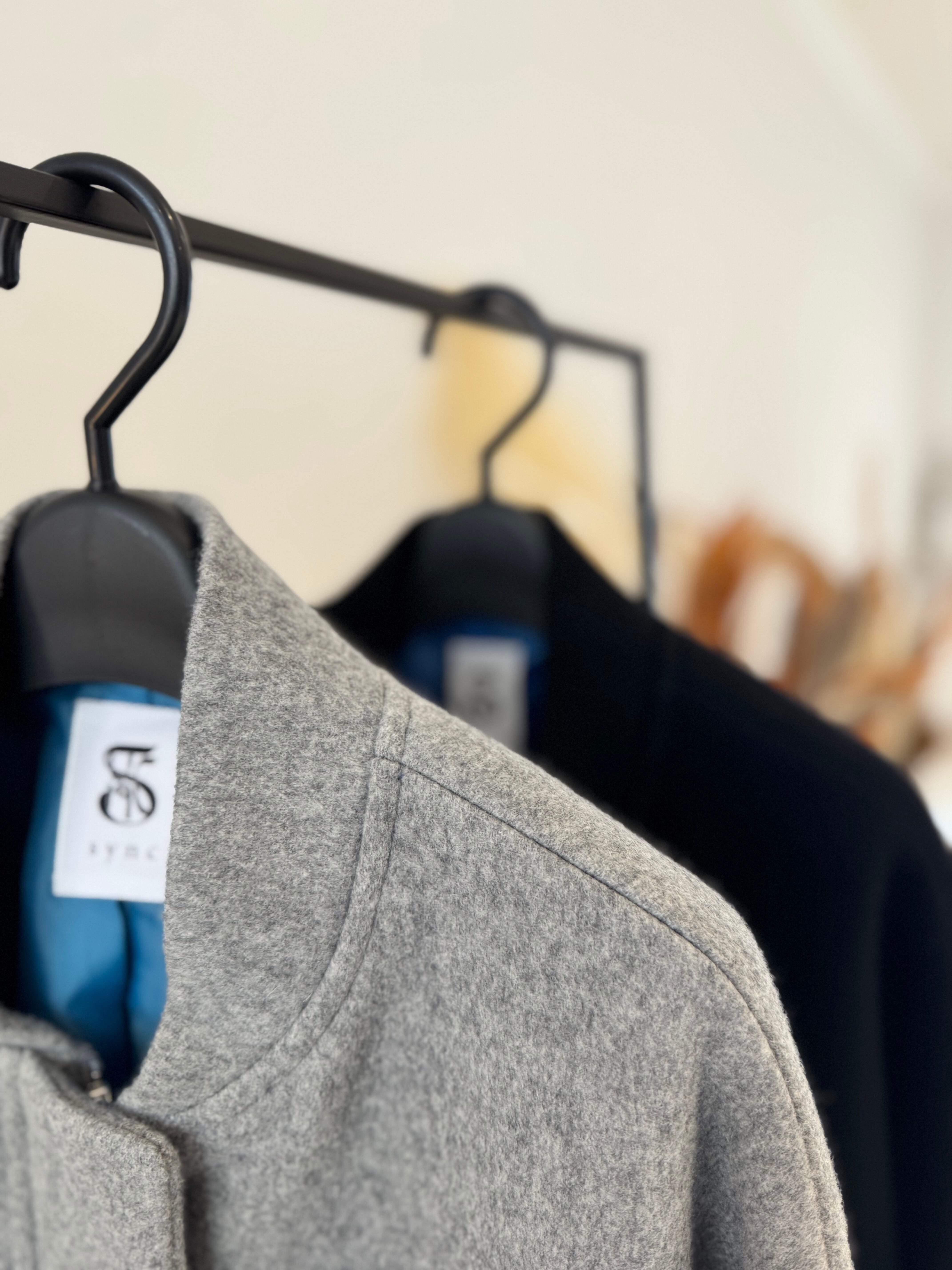 裏地には青のバイカラーを使用しており、着る際のさりげないアクセントとなり、こだわりを感じさせる一着です。